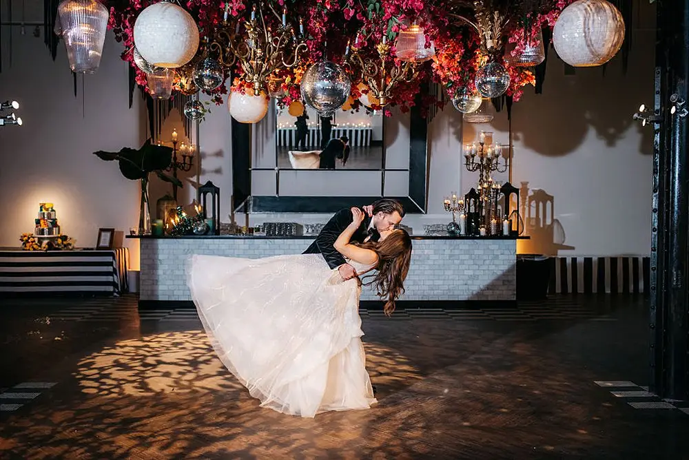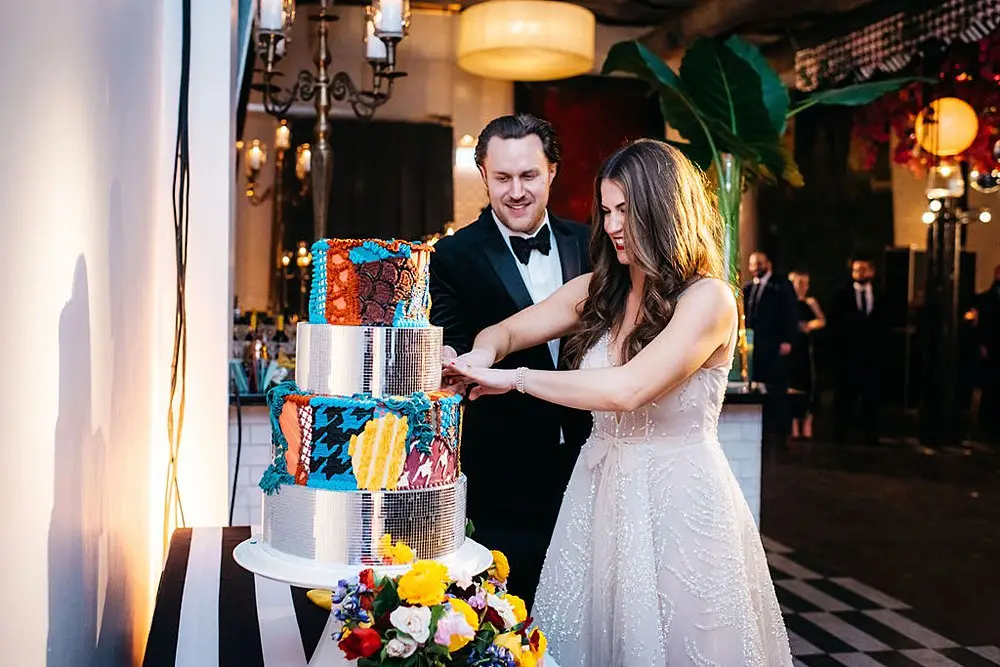 We started dinner off with a meatball trio featuring a variety of proteins and sauces (because you don’t make friends with salad) and then lead guests into an entrée of Short Rib, Chicken Pot Pie, or Mushroom Gnocchi. Dessert was a sinful mix of the outrageously colorful, patterned and disco wedding Cake provided by ECBG Cake Studio, Gibson’s Chocolate Mousse pie, which is a birthday staple in our household, and petite, boozy milkshakes passed on the dance floor to cool our guests down when they were too hot from dancing up a storm to the beats of DJ Chris Somera from Elegant Sound and Lighting. And we of course couldn’t let our guests leave for the after-party hungry. In true Michelle and Shane fashion, we ended our night with a cart of late-night Dim Sum from Ming Hin, our favorite Chinatown spot to end any night of drinking and fun.