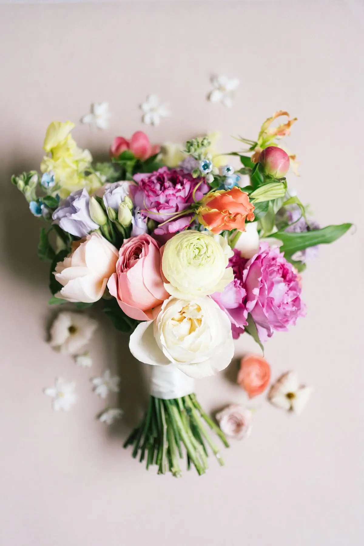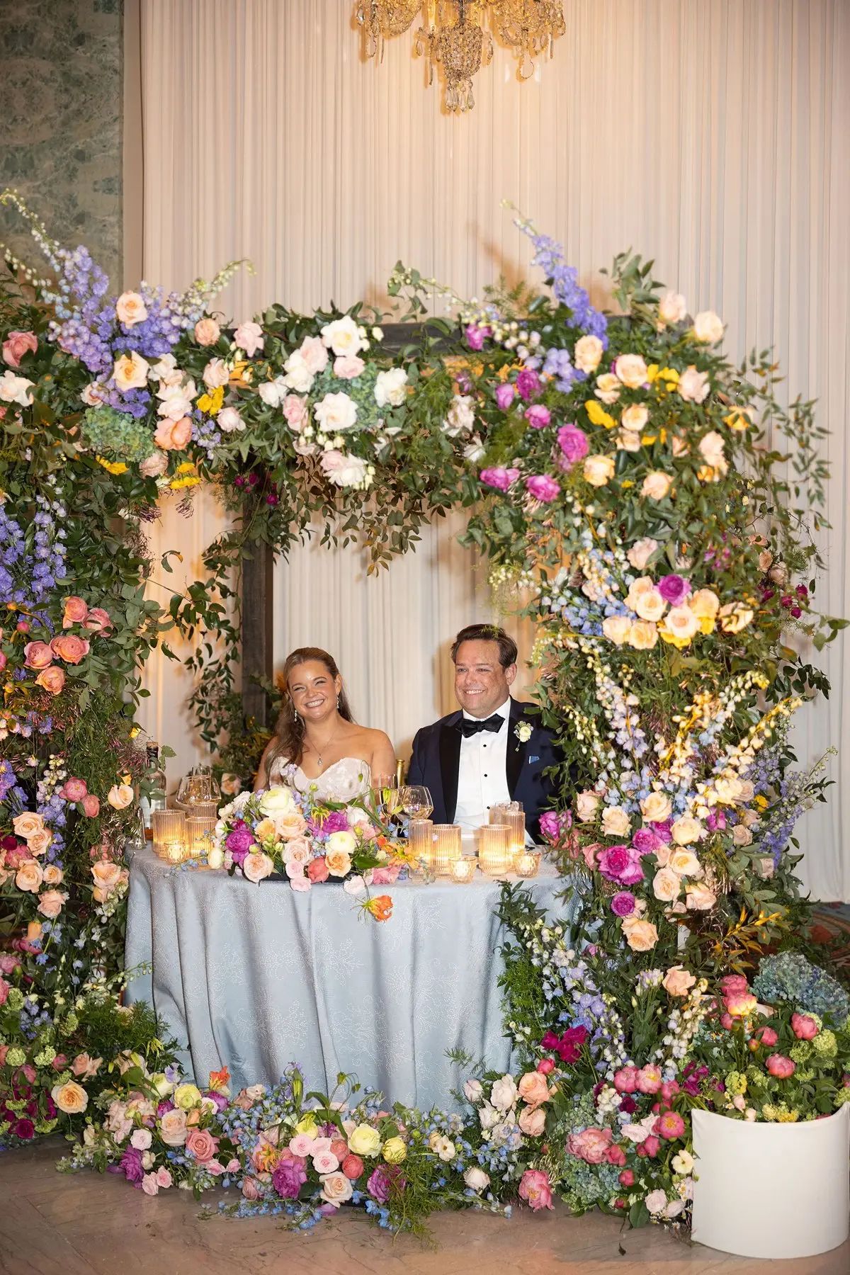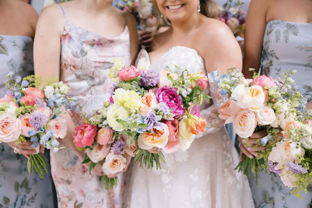 The design vision centered around multicolored spring varietals — joyful, lush, and intentionally layered. Working alongside the incredibly talented team at Fleur Inc., we leaned into seasonal blooms that felt organic yet elevated, colorful yet refined.