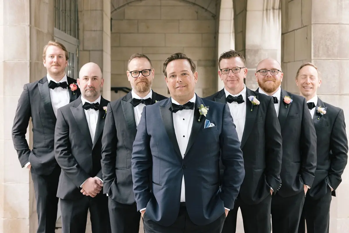 Emily was stunning in her Ines Di Santo gown from Ultimate Bride, a look that felt timeless and fashion-forward all at once complimented by a gorgeous soft glam look done by Gabe Post of Bianca Sansosti Artistry. Brian looked equally sharp in classic menswear from The Black Tux — polished, confident, and effortlessly stylish.