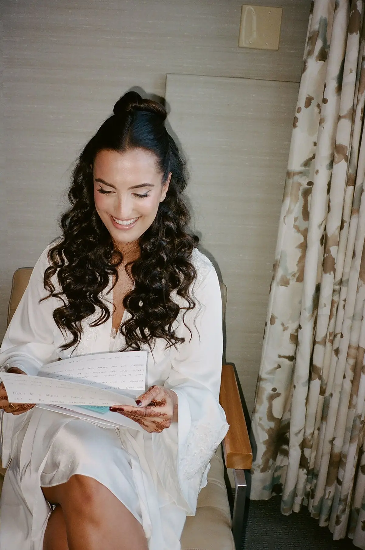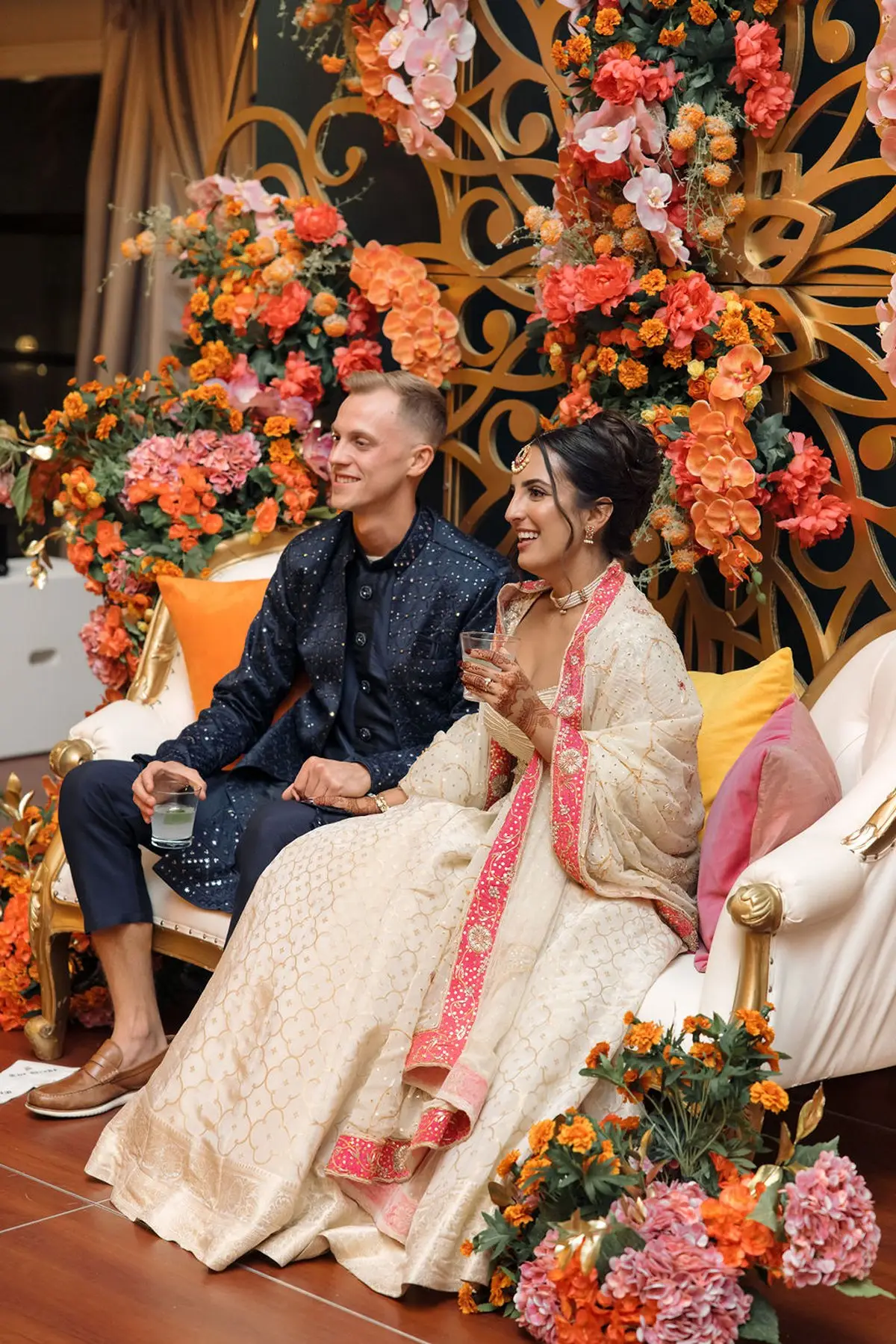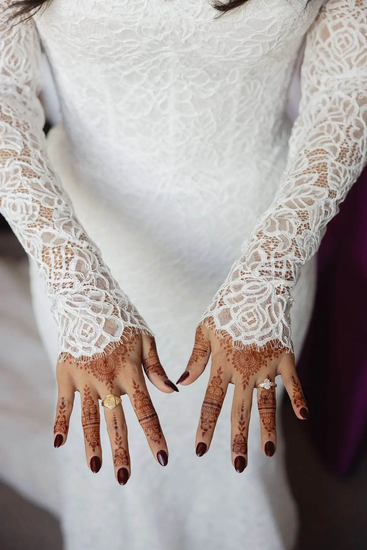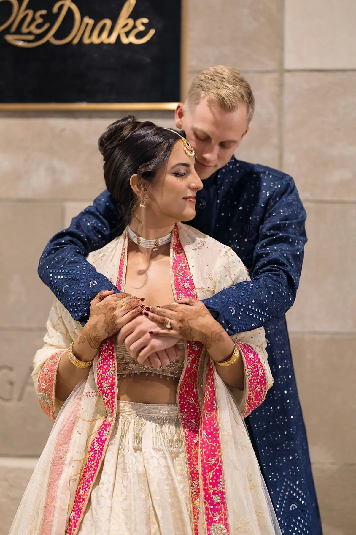 The celebrations began with a vibrant Mehndi night honoring Savannah’s Indian heritage at the iconic Drake Hotel Chicago. Unnati Shah created intricate mehndi artistry for the bride while guests enjoyed music, color, and warmth that contrasted beautifully with the dark romance of the wedding day that was still to come. The dance team Movement of Desis got guests on their feet and on to the dance floor to kick off a party weekend.