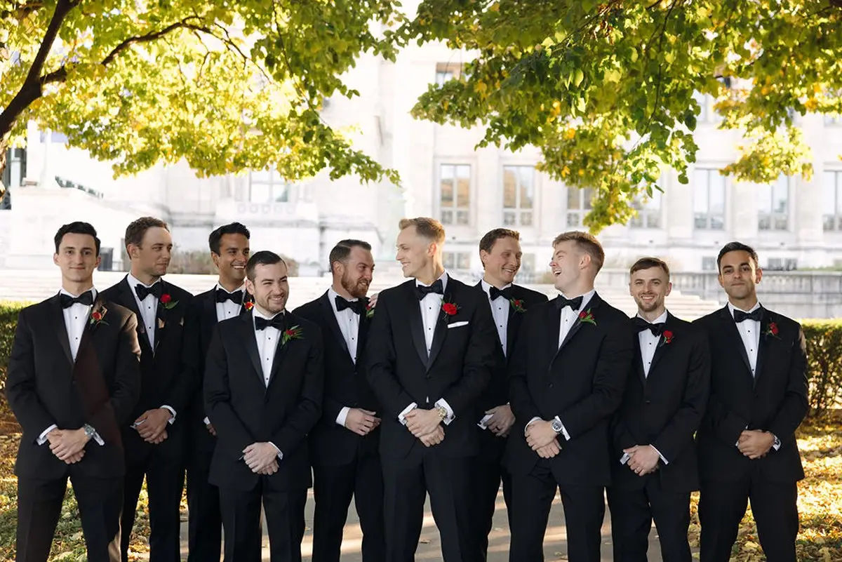 Her bridesmaids wore chic, modern silhouettes from Amsale at Bella Bridesmaids, that complemented the of the overall design. Tim and his groomsmen looked impeccably sharp in custom attire from Emanuele Tuxedo—truly the perfect balance of timeless and bold.