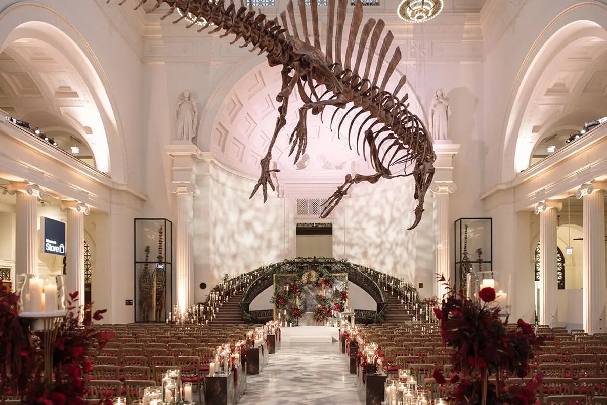 Frost Chicago enhanced the mood with dramatic lighting and drapery, ensuring the entire evening unfolded in a candlelit glow that felt intimate and otherworldly—despite being surrounded by world-class history exhibits.