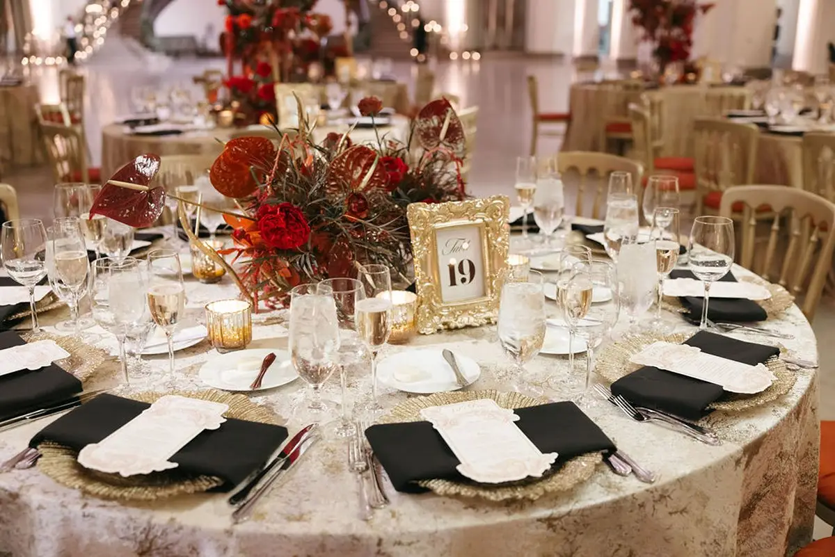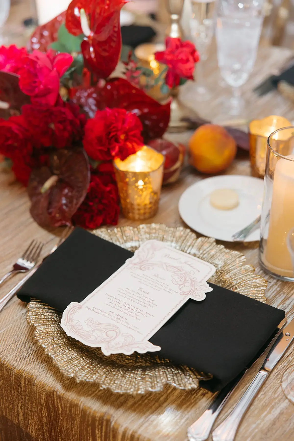 Guests dined on exceptional cuisine by Food For Thought Chicago, surrounded by luxe linens from BBJ La Tavola and elevated rentals provided by Halls Rental. Each tabletop felt layered, intentional, and editorial—something you’d expect in a Parisian salon or an art-driven fashion shoot.
