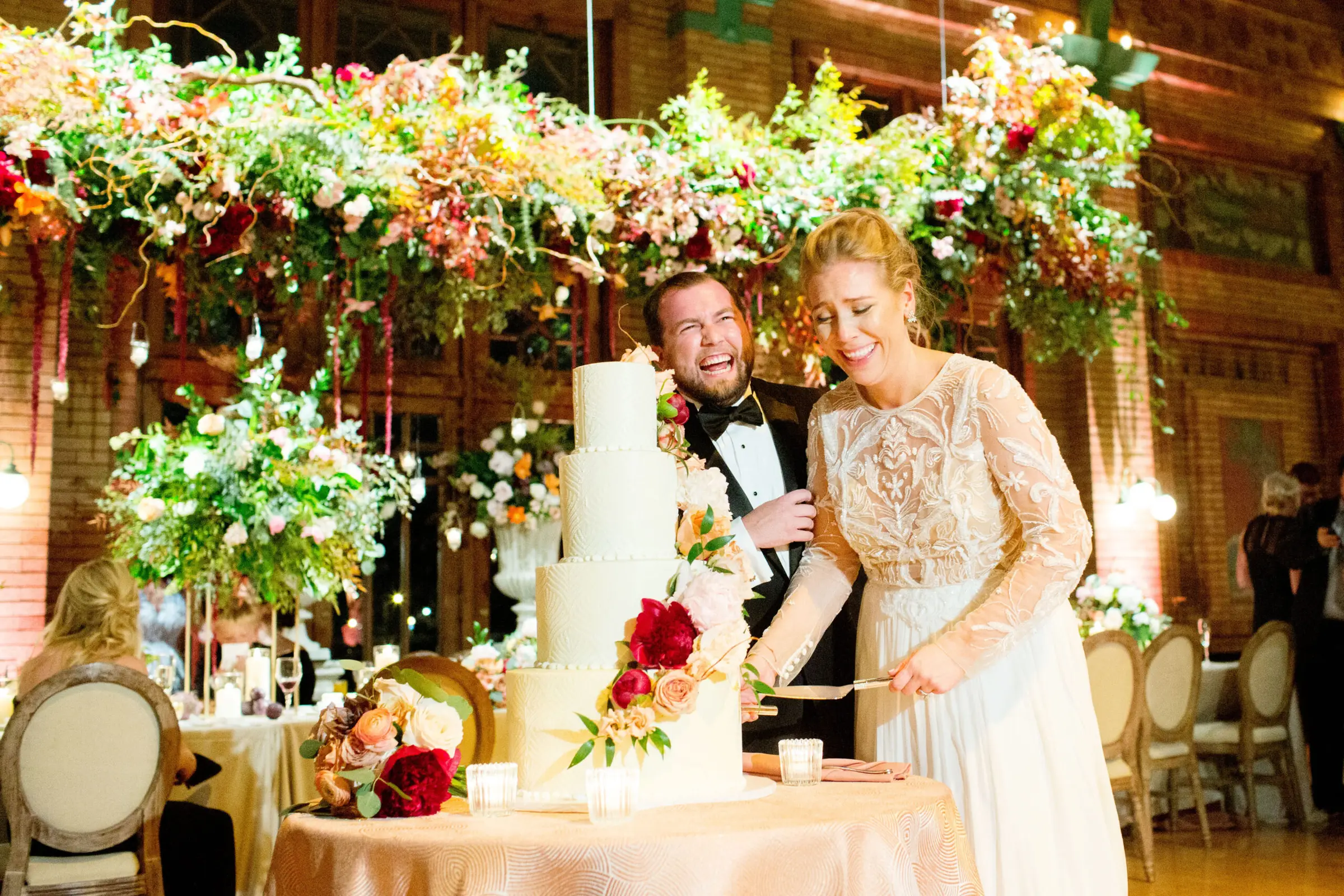 The Great Hall was GLOWING due to the perfect lighting treatment delivered by Frost Chicago which made the foliage and fruit-filled design of HMR Designs shine even brighter than one could imagine. The gorgeous cake from ECBG stood center stage, ready to be nibbled, and the paper goods from Steracle Press made for the perfect personal touches in the space.