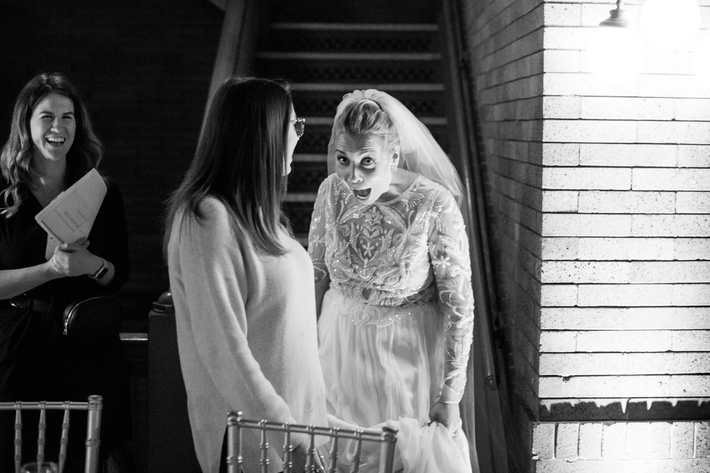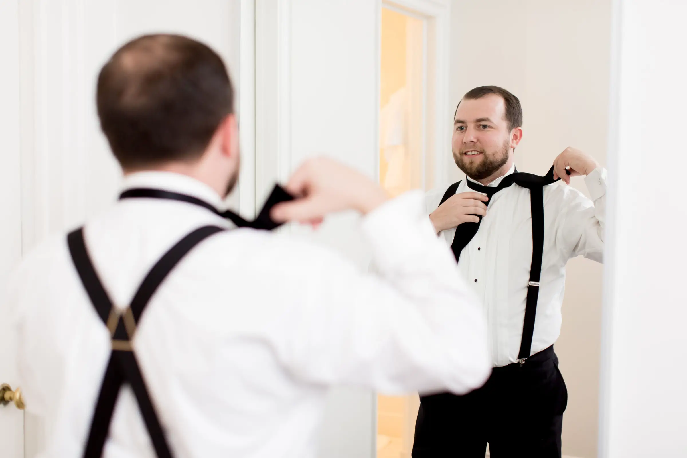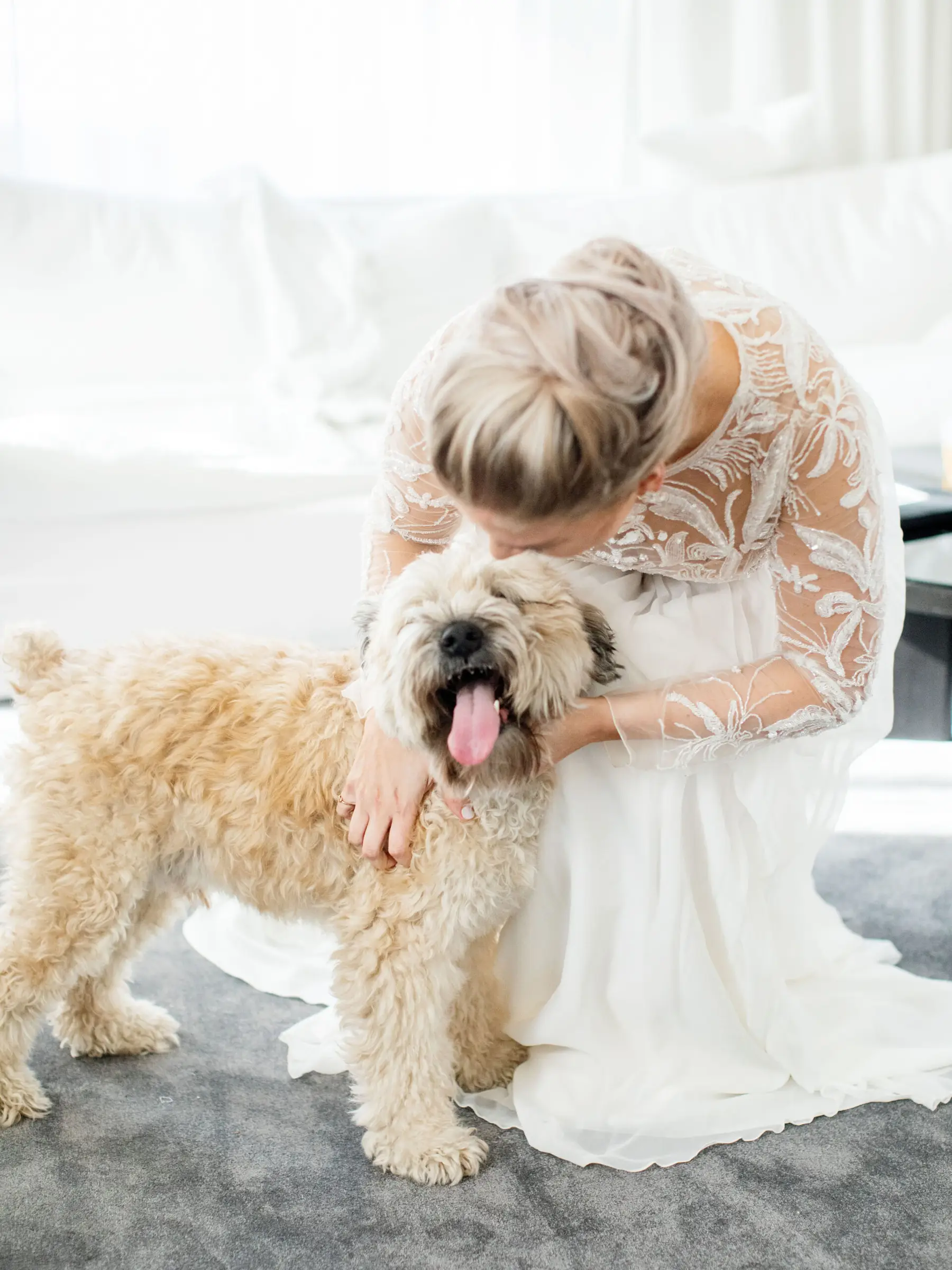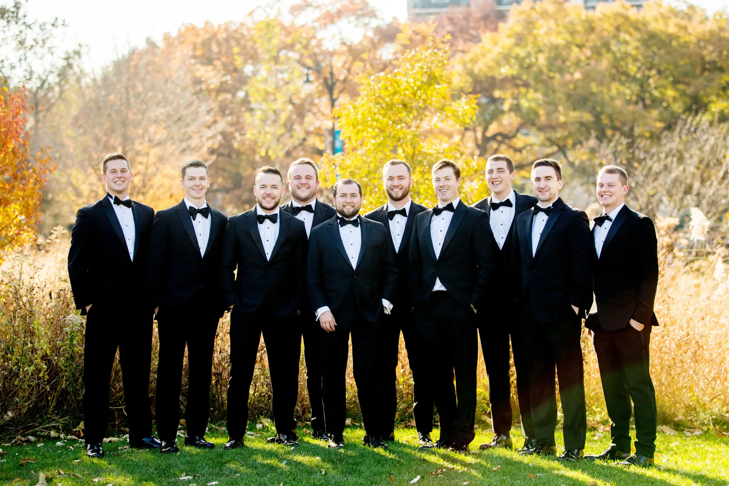 The day started with the guys and gals, and sweet pup Murray, getting ready at the iconic Ambassador hotel. Maggie and the bridesmaids were all glammed up by Gabe Post, while Brian and the guys were able to chill a little while longer, and casually enjoy a nice round of beer pong. The bridesmaids were each their own style of glam, sporting black gowns in the style of their choosing, and the men remained simple and elegant, in black tie. Maggie slayed in her LouVienne gown, and Brian’s jaw dropped when he saw her for the first time with city views as the backdrop.