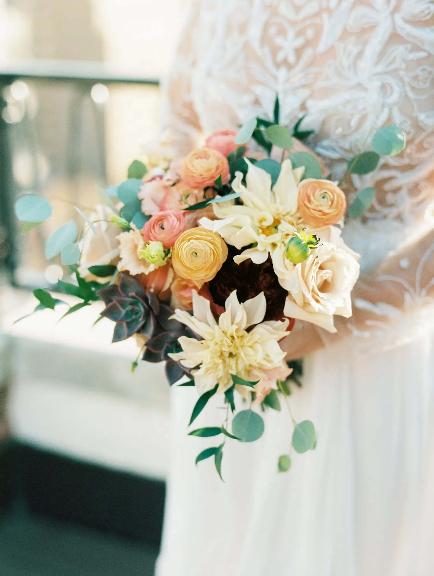After the vows were made, and psalms were sung, it was time to get ready to mingle with their guests. Maggie, Brian, and the gang finally made their way to their open bar at café Brauer to sip cocktails on the loggia as we put the finishing touches on their gloriously fall-honed reception.