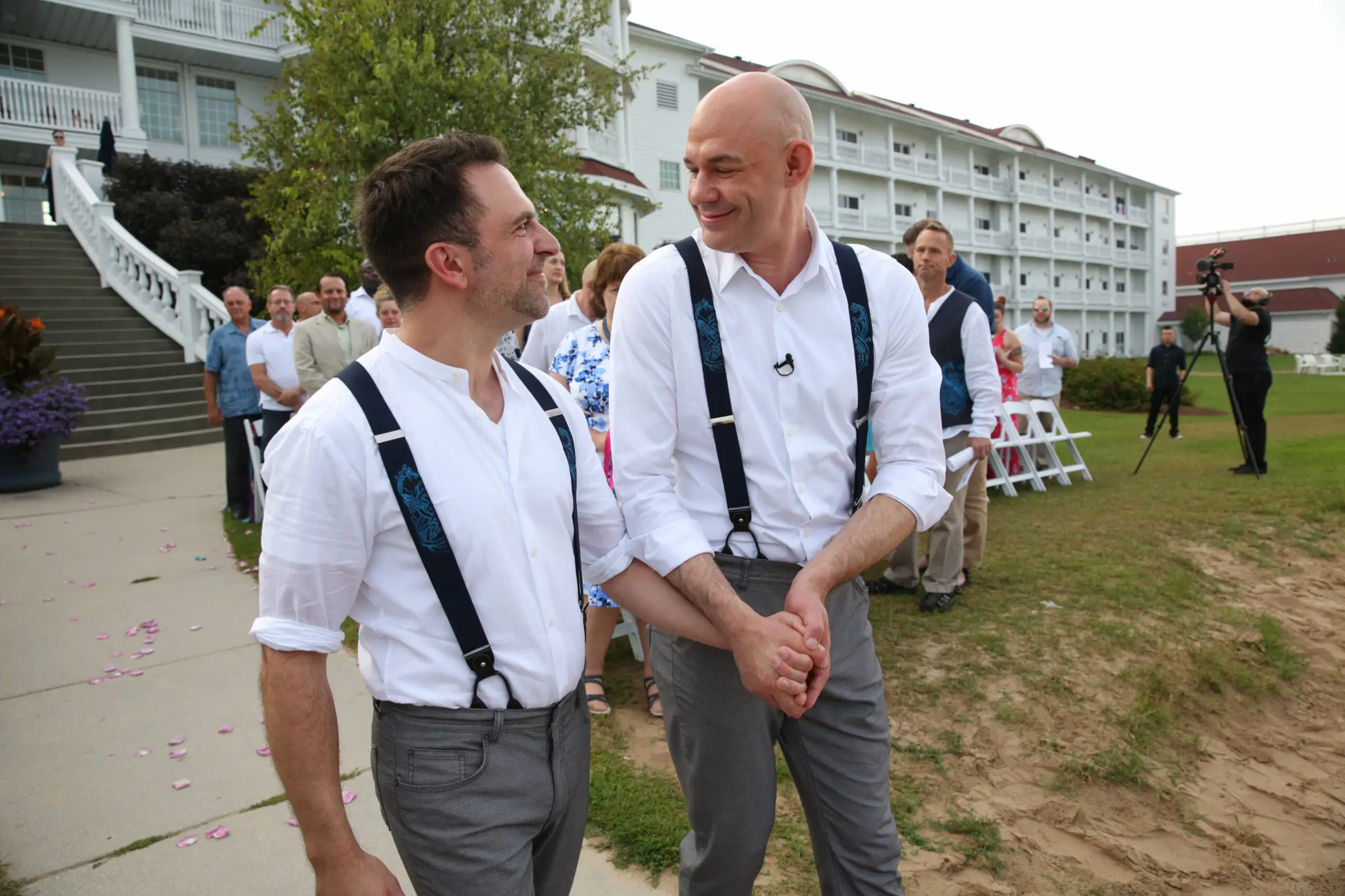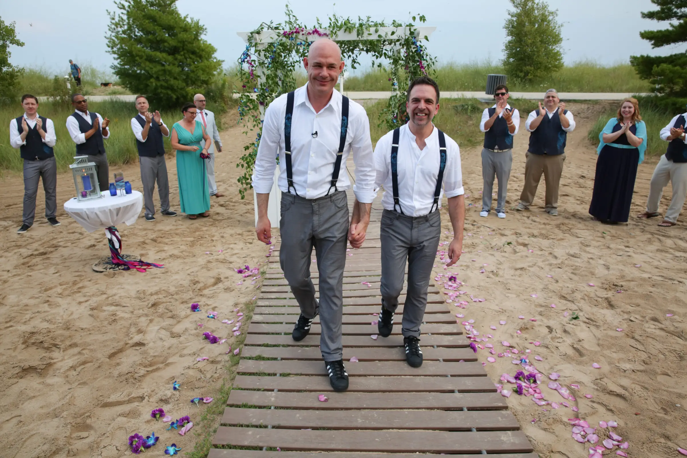 I was so honored when Matt and Mark asked me to help them plan their Blue Harbor Resort summer destination wedding. Believe it or not, I met them on a helicopter soaring high over the island of Kauai in Hawaii. We got to chatting about where we were from and found we only lived a mile from each other back in Chicago. A friendship was born and social media “likes” of each others posts kept us in touch after our vacation.