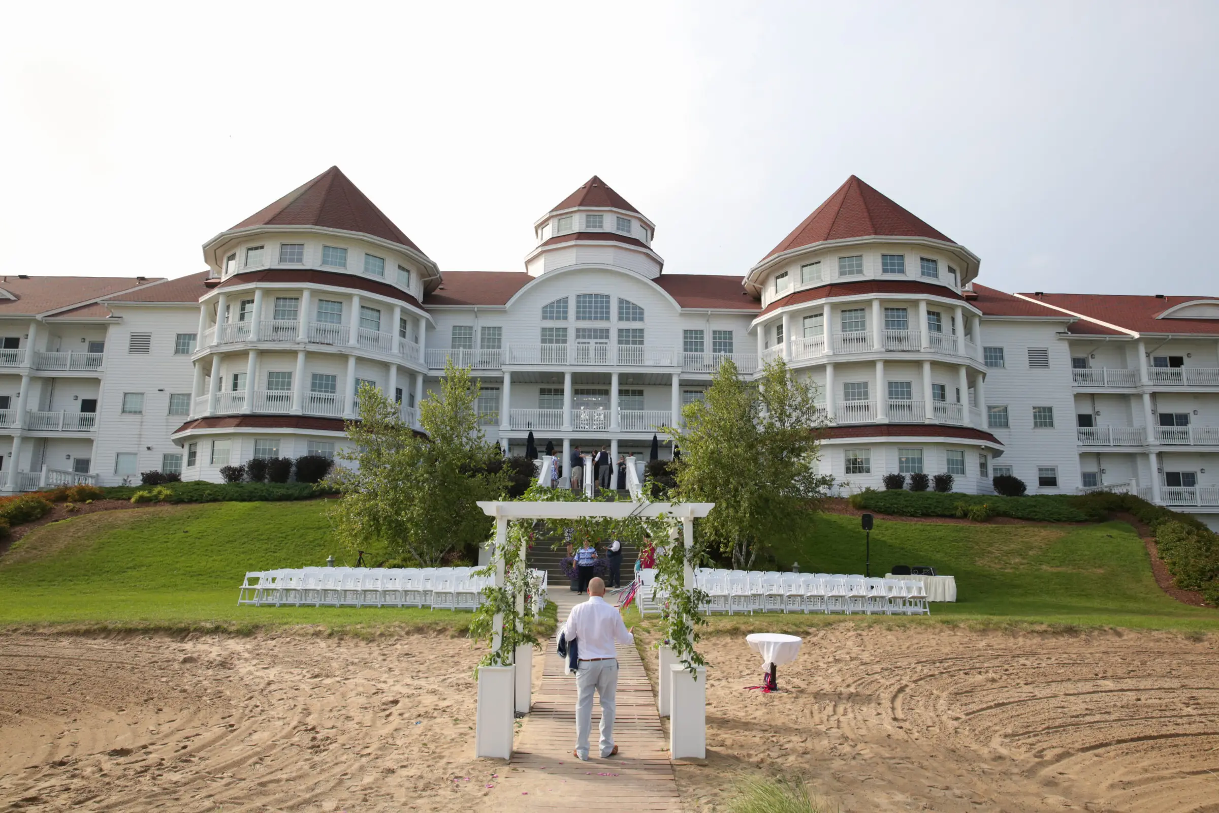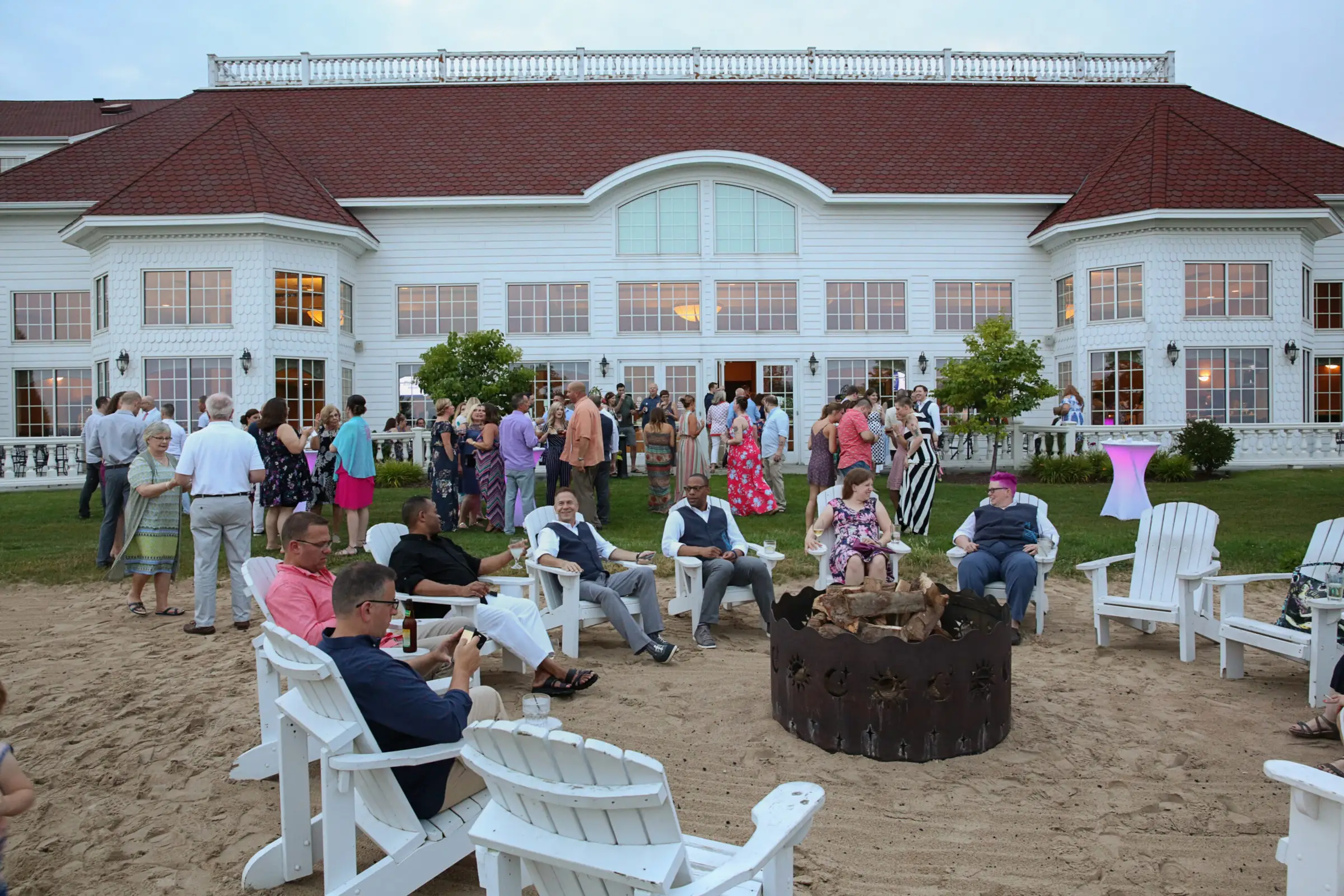 Blue Harbor Resort in Sheboygan Wisconsin ticked all the boxes! Only a couple hours north of Chicago on a beautiful strip of Lake Michigan, the resort offered accommodations and event space for a large wedding and yes, you guessed it… beach ceremony and BONFIRE! BINGO!