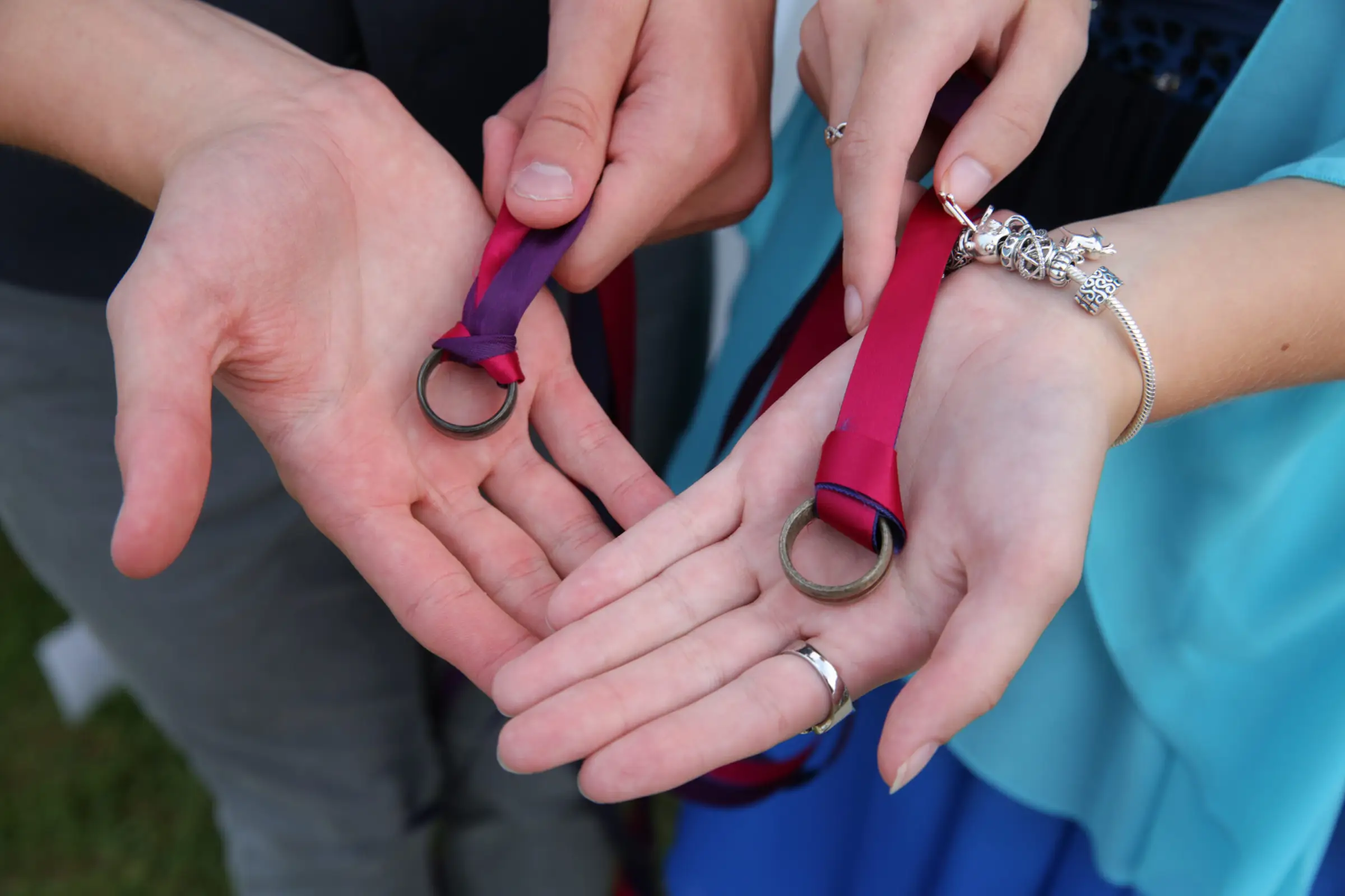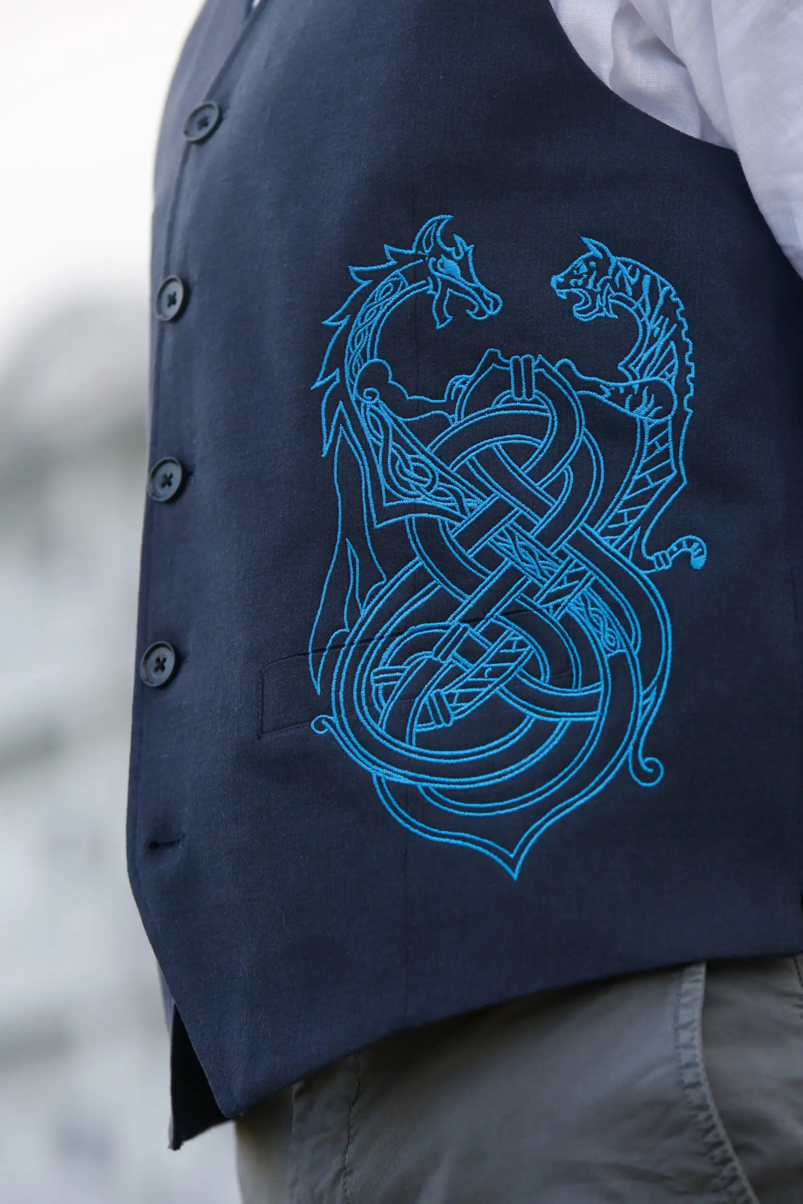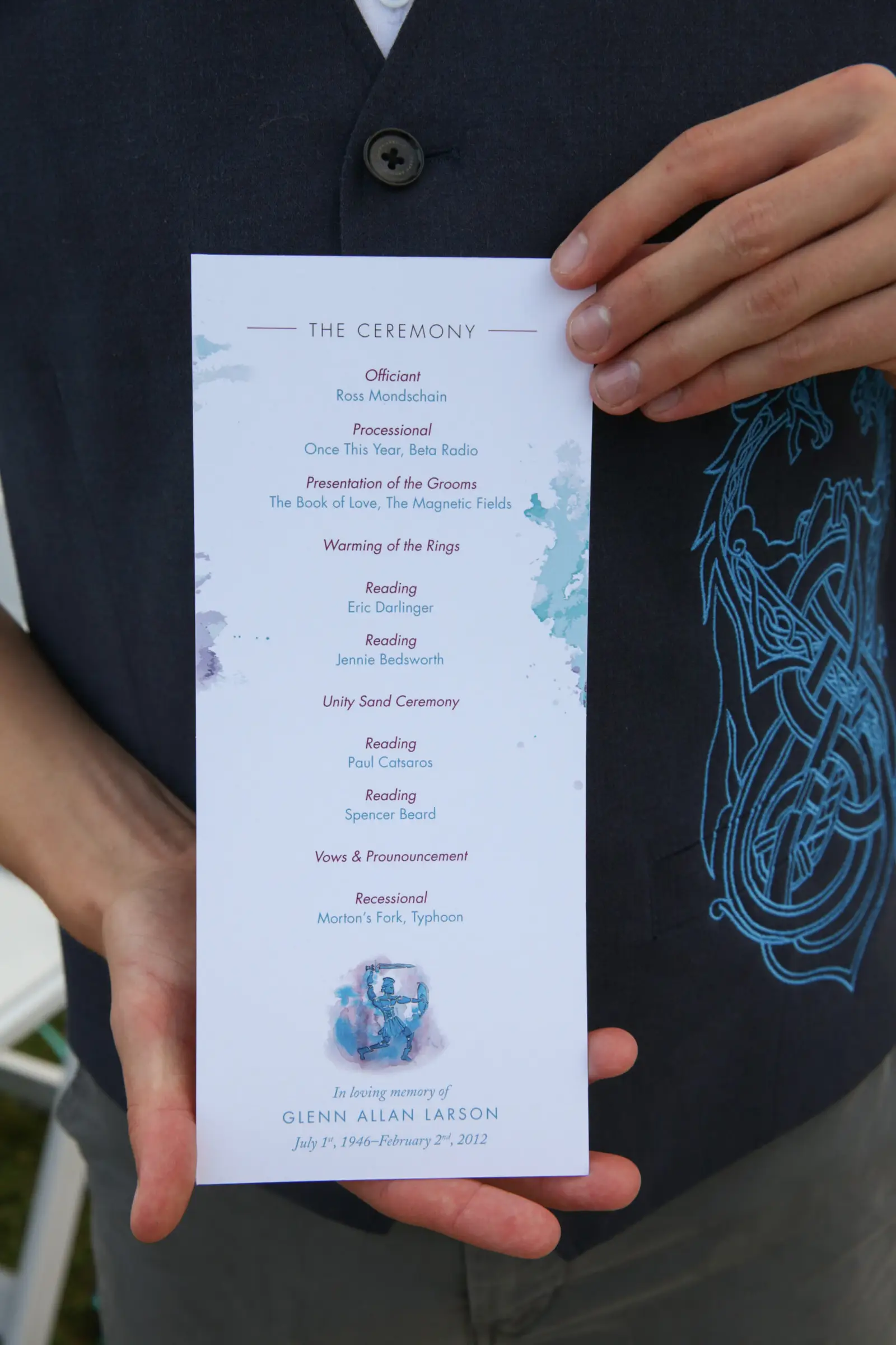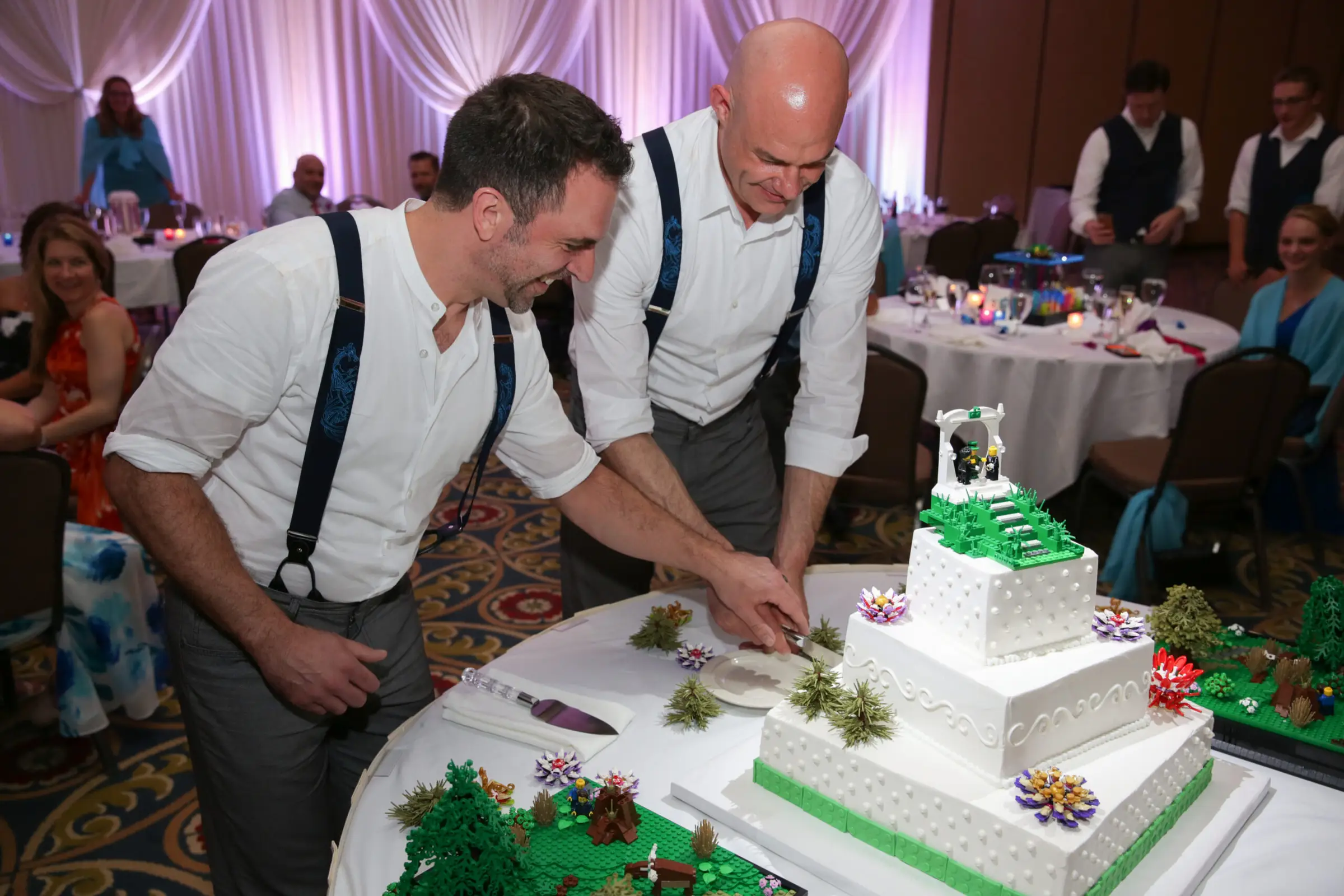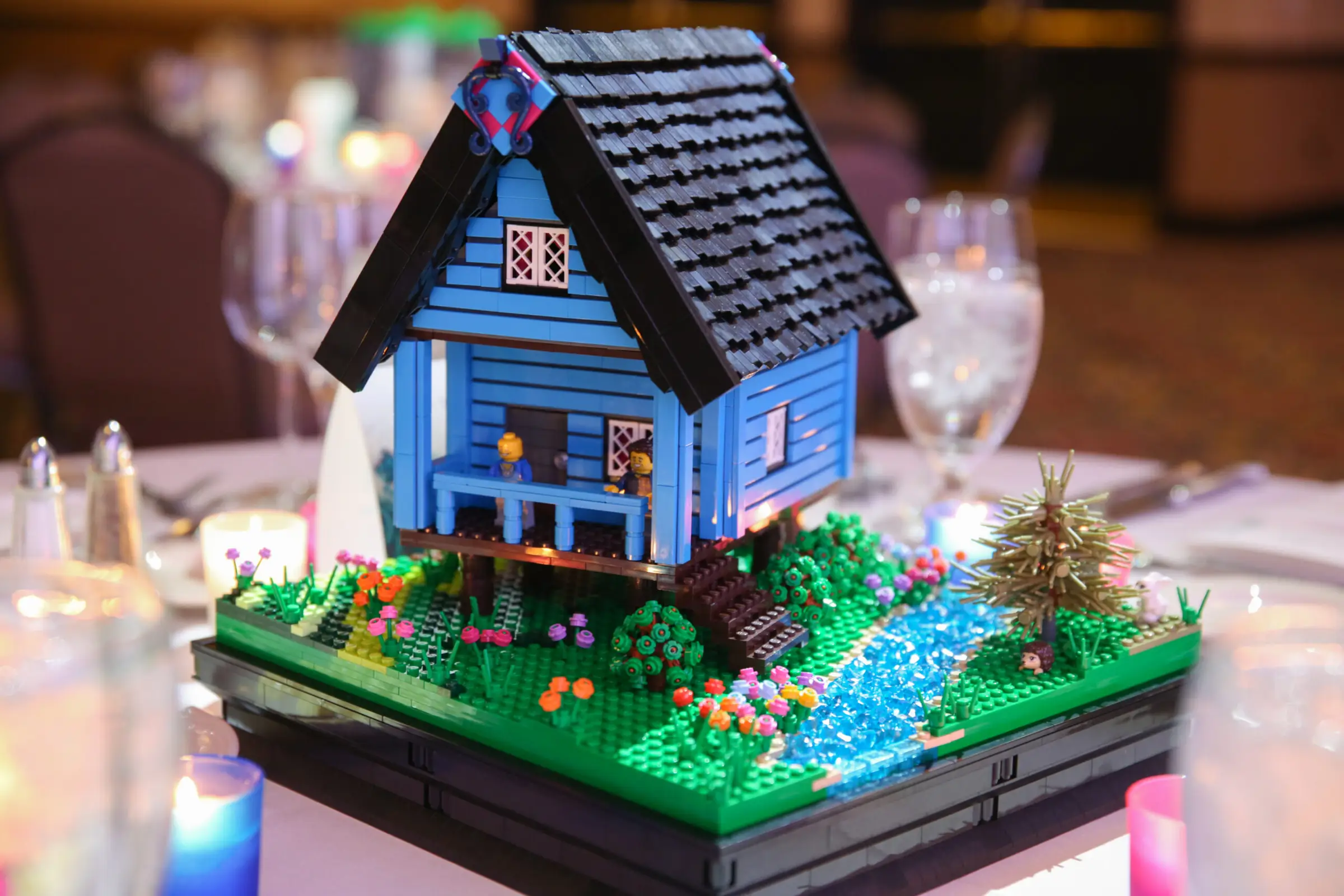 A Friday evening ceremony on the beach was followed by a formal reception with dinner and dancing. Mark is a LEGO Master Builder so he and his friends created the most incredible LEGO centerpieces that reflected different moments from the couple’s past. It was such a great way to celebrate their lives together and the centerpieces were all little works of art! Mark is an artist by trade so he also designed their wedding logo, which was used on their invitation suite and day of stationery, and custom embroidered vests and wraps for their attendants.