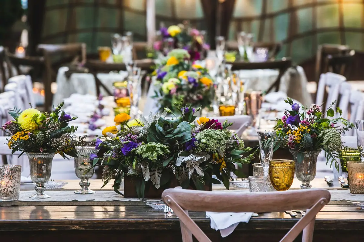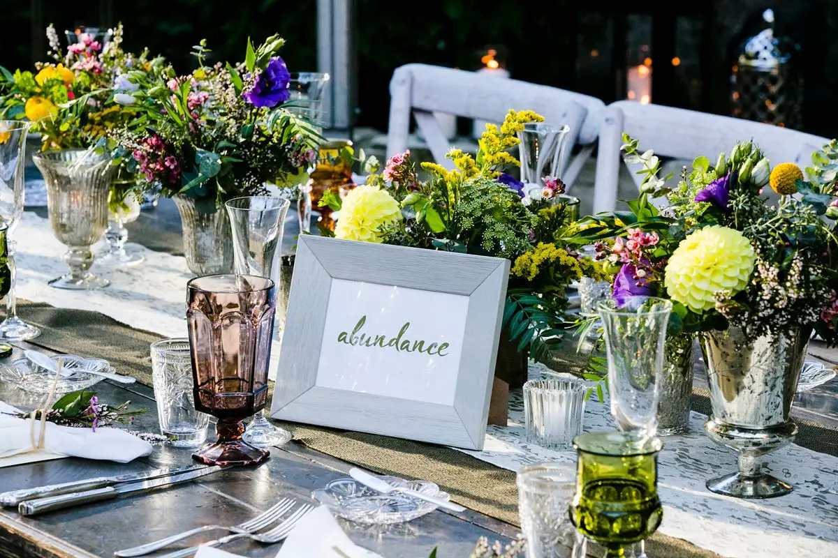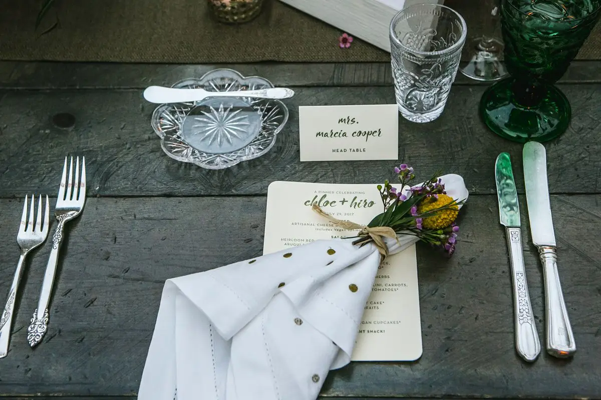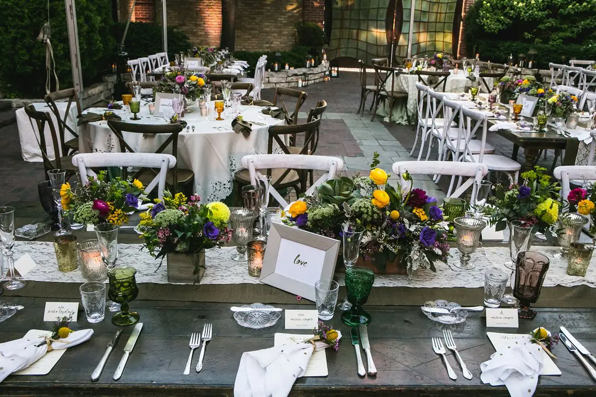 Chloe and Hiro were married in a small private ceremony, but still wanted a great party to celebrate their union with family and friends. We created the perfect vineyard/Santa Barbara winery inspired wedding right in the heart of the Chicago South Loop at the stunning Chicago Illuminating Company. Eclectic floral, tabletop and linen created a relaxed backdrop for their family style meal by Boka Catering, and 1000 paper cranes danced in the air above the dance floor-a symbol of good luck in the groom’s Japanese culture.