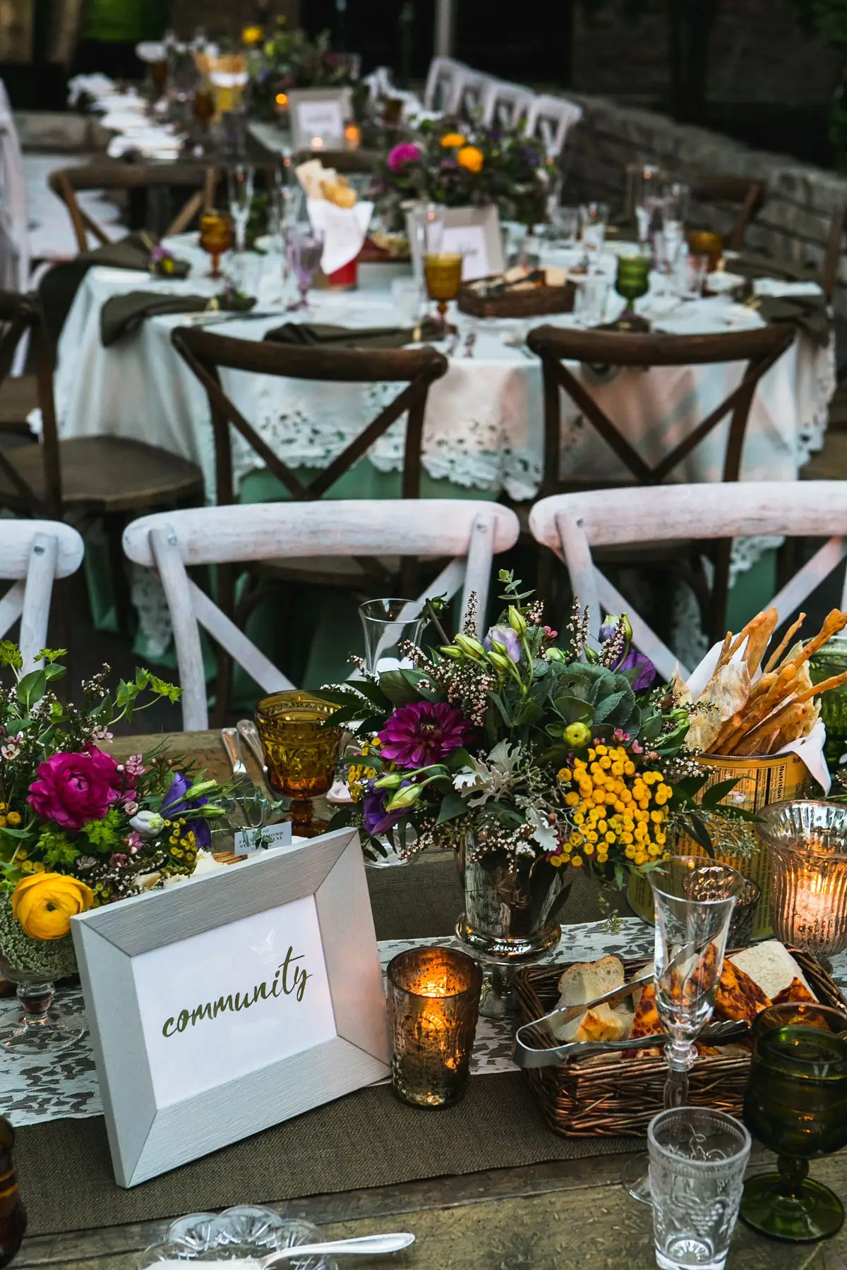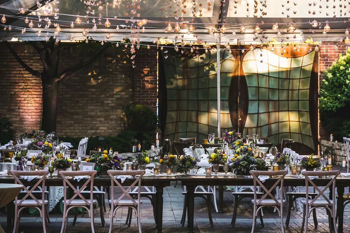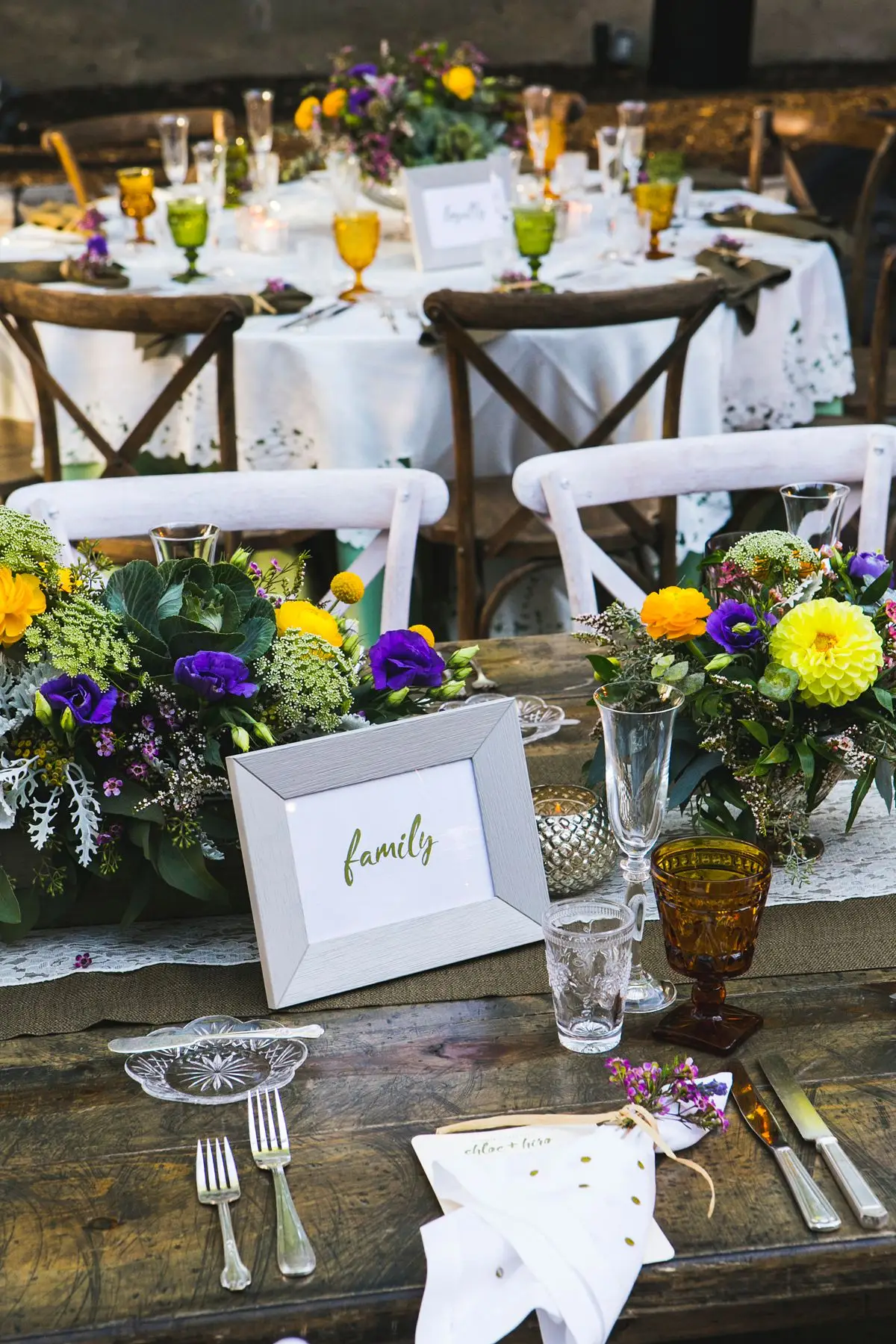 Chloe and Hiro were married in a small private ceremony, but still wanted a great party to celebrate their union with family and friends. We created the perfect vineyard/Santa Barbara winery inspired wedding right in the heart of the Chicago South Loop at the stunning Chicago Illuminating Company. Eclectic floral, tabletop and linen created a relaxed backdrop for their family style meal by Boka Catering, and 1000 paper cranes danced in the air above the dance floor-a symbol of good luck in the groom’s Japanese culture.