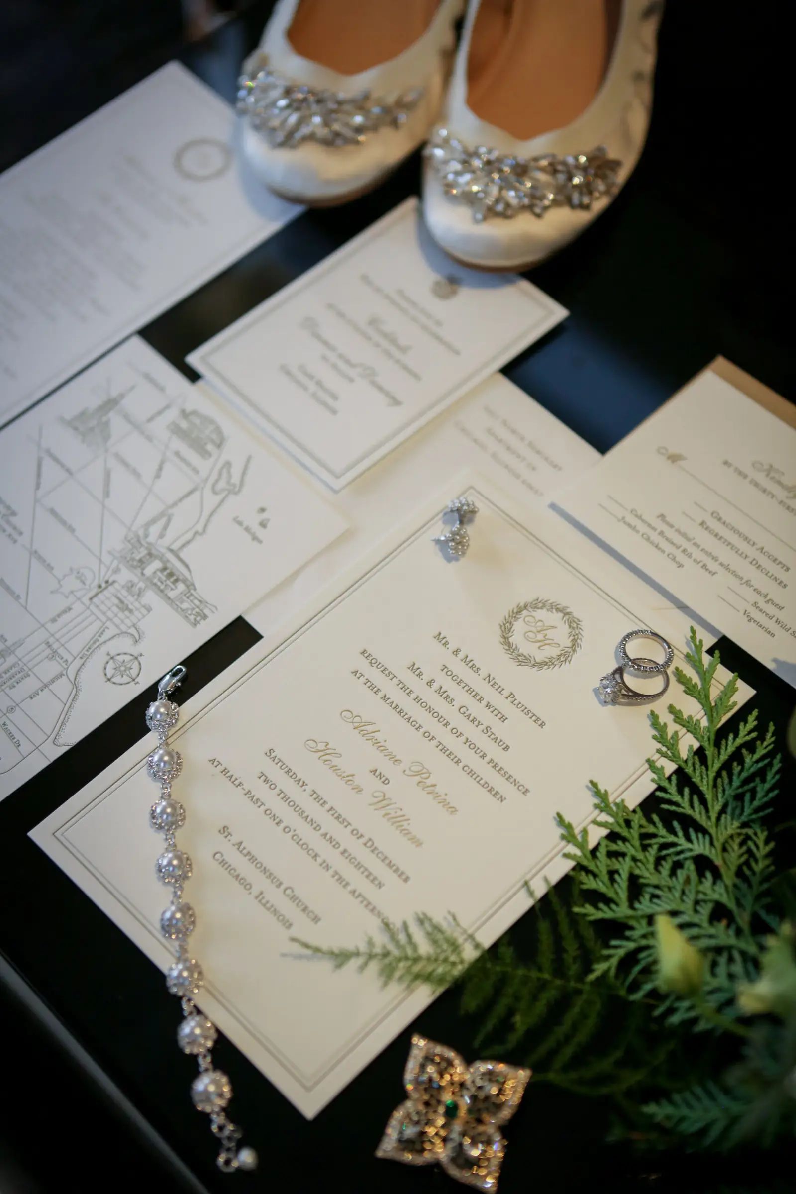 It all started at St. Alphonsus where Adrianne and Houston said their “I Dos” at one of the most gorgeous churches in the city. Adrianne looked like a princess in her stunning gown from Bella Bianca Bridal Couture, and Houston dapper in his tux from Emmanuel Tuxedo. After the rings were exchanged, the two headed out around town to enjoy some time with their closest friends in the cutest trolley from Second City Trolley. They grabbed some shots with Stephanie Jolin Photography at some iconic Chicago locations such as Union Station and the Chicago Cultural Center – and the rain could not get them down!