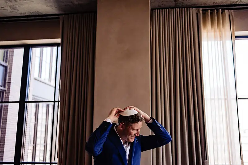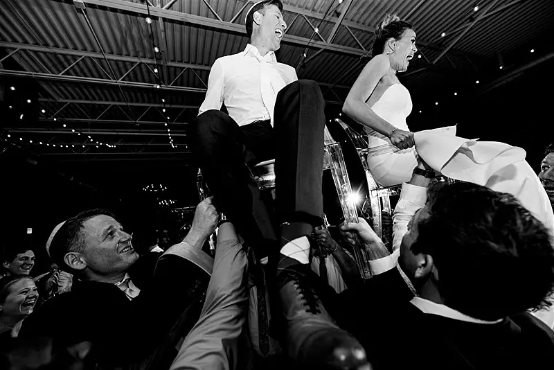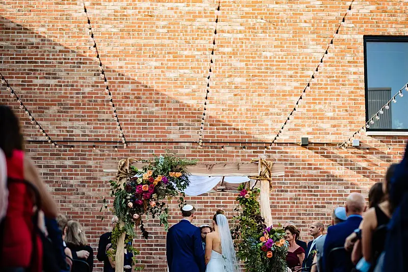 Prior to the ceremony, the couple each shared with their respective families a pre-ceremony Tisch with drinks and laughter, followed by the traditional Ketubah signing. Once these formalities had been completed, Megan and Colin finally made their way under the chuppah crafted specifically for them by Megan’s father.