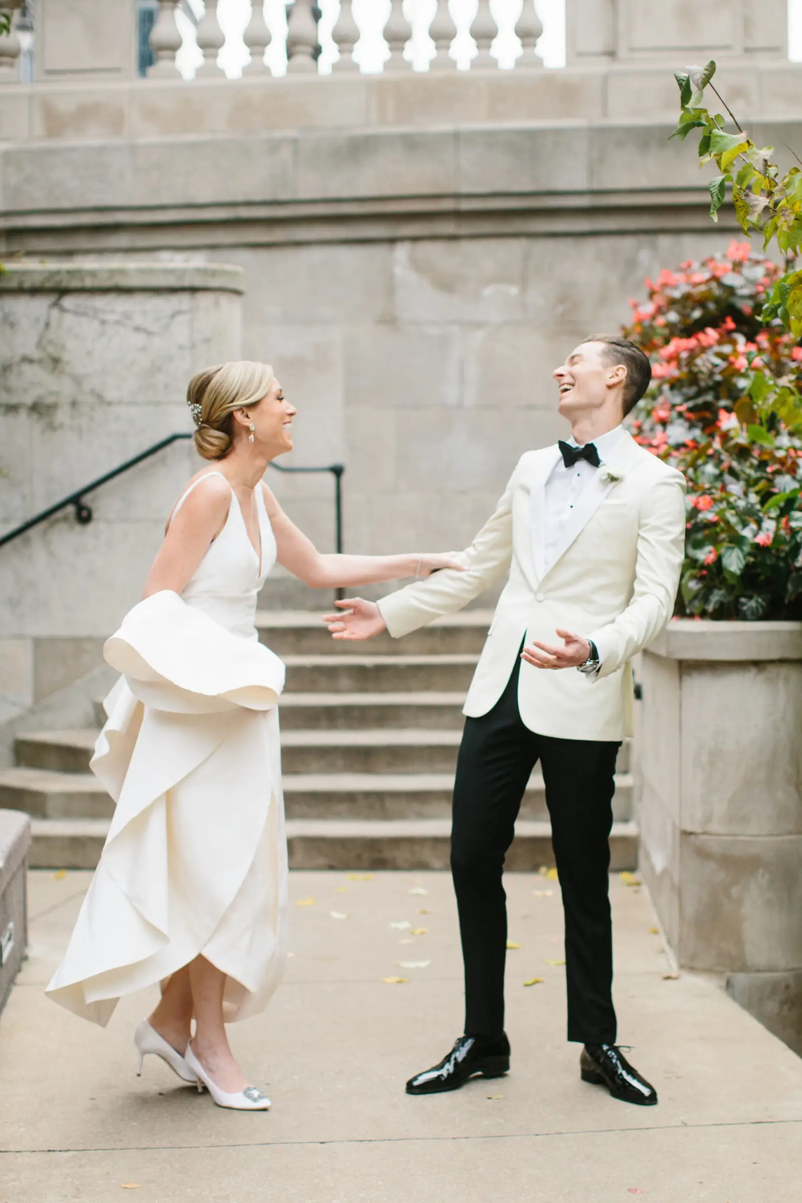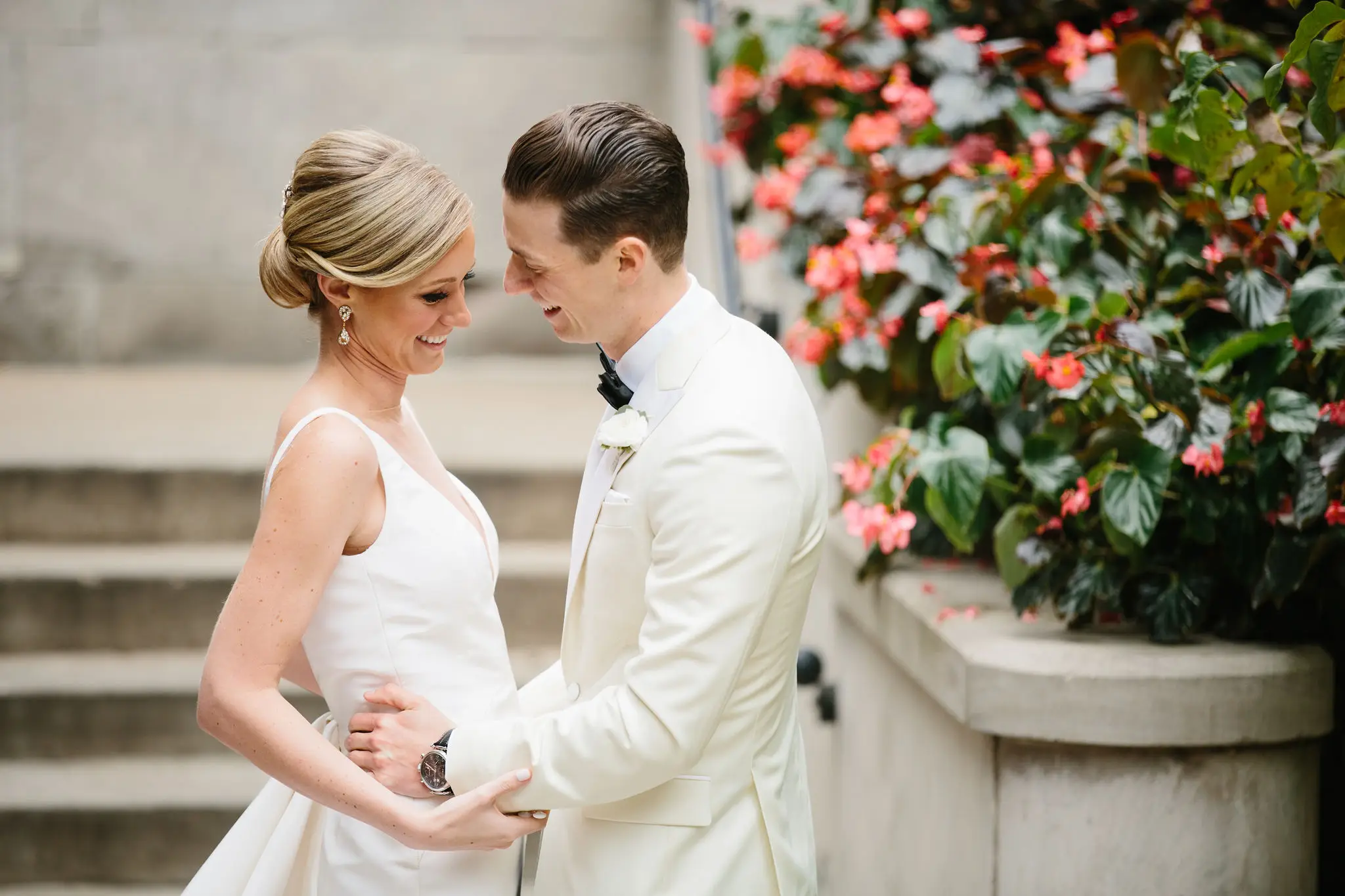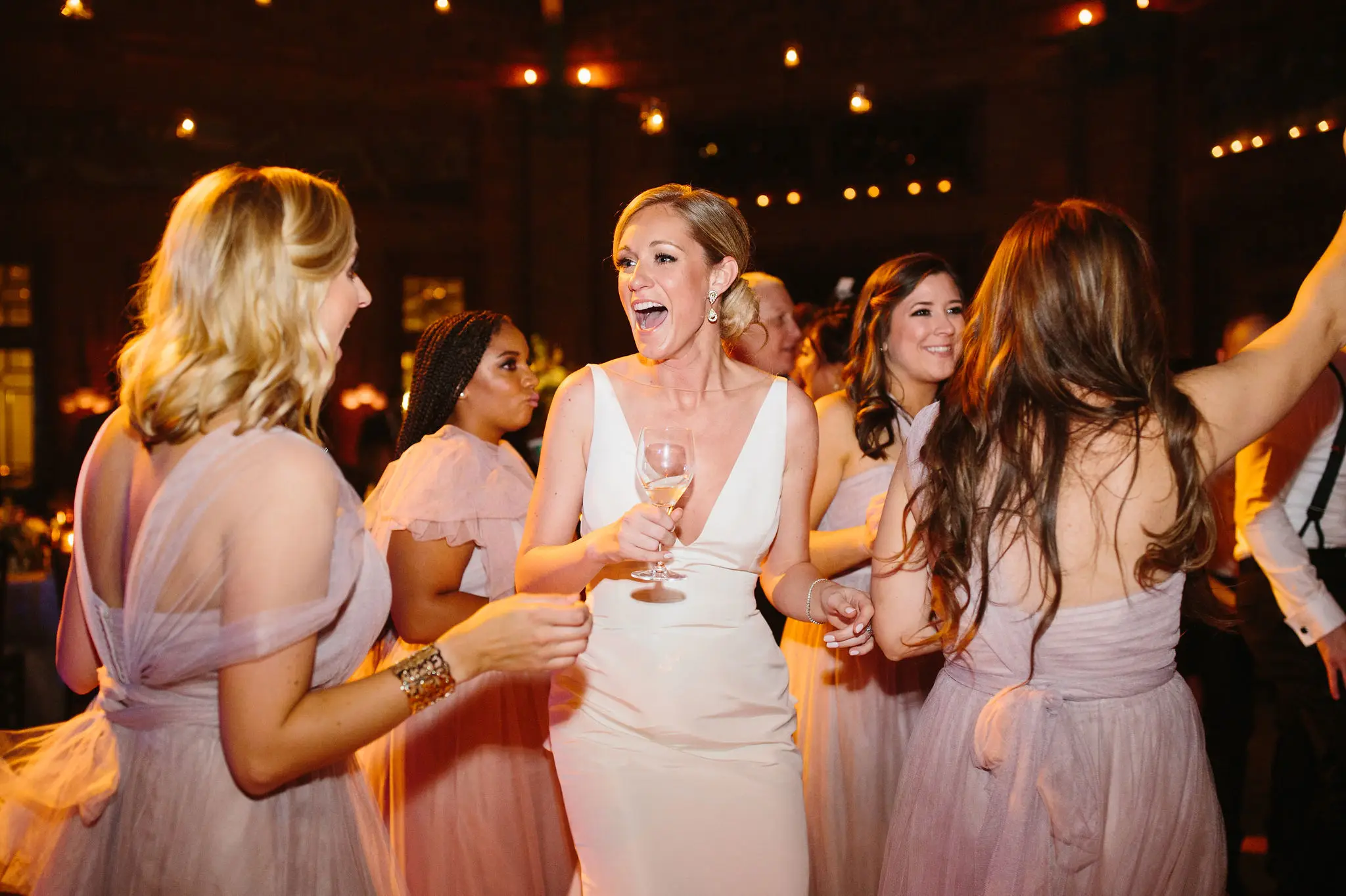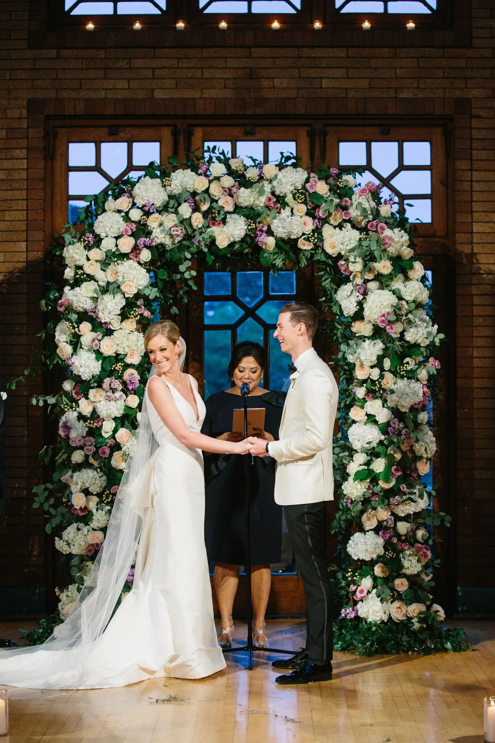Jen and Michael definitely earned some “best dressed status” in their wedding finery. Jen was a Grace Kelly-esque vision in her timeless Oscar De La Renta sheath gown, and Michael showed off his style in a dinner jacket from The Black Tux. The bridesmaids were in Jenny Yoo NYC.