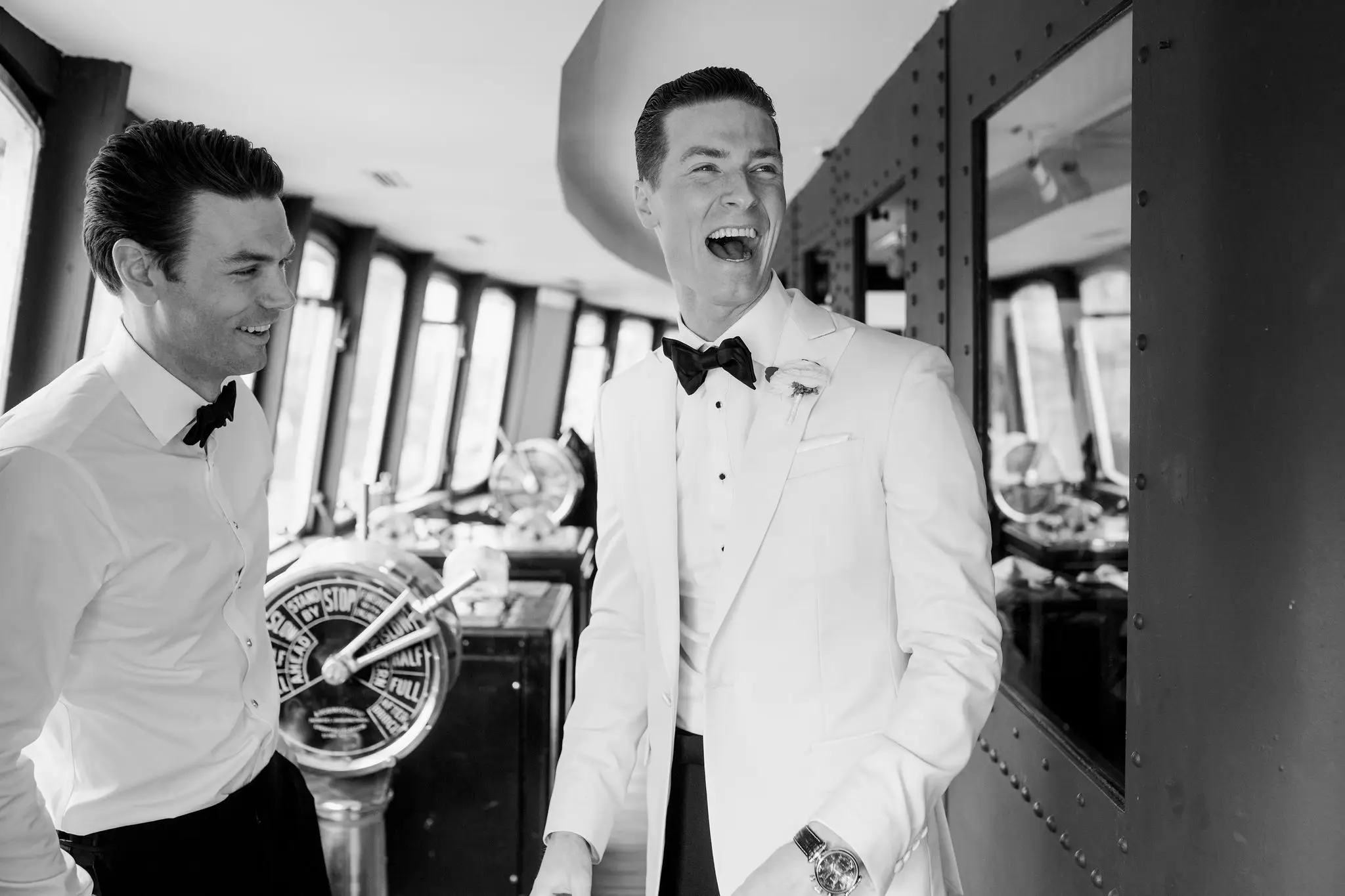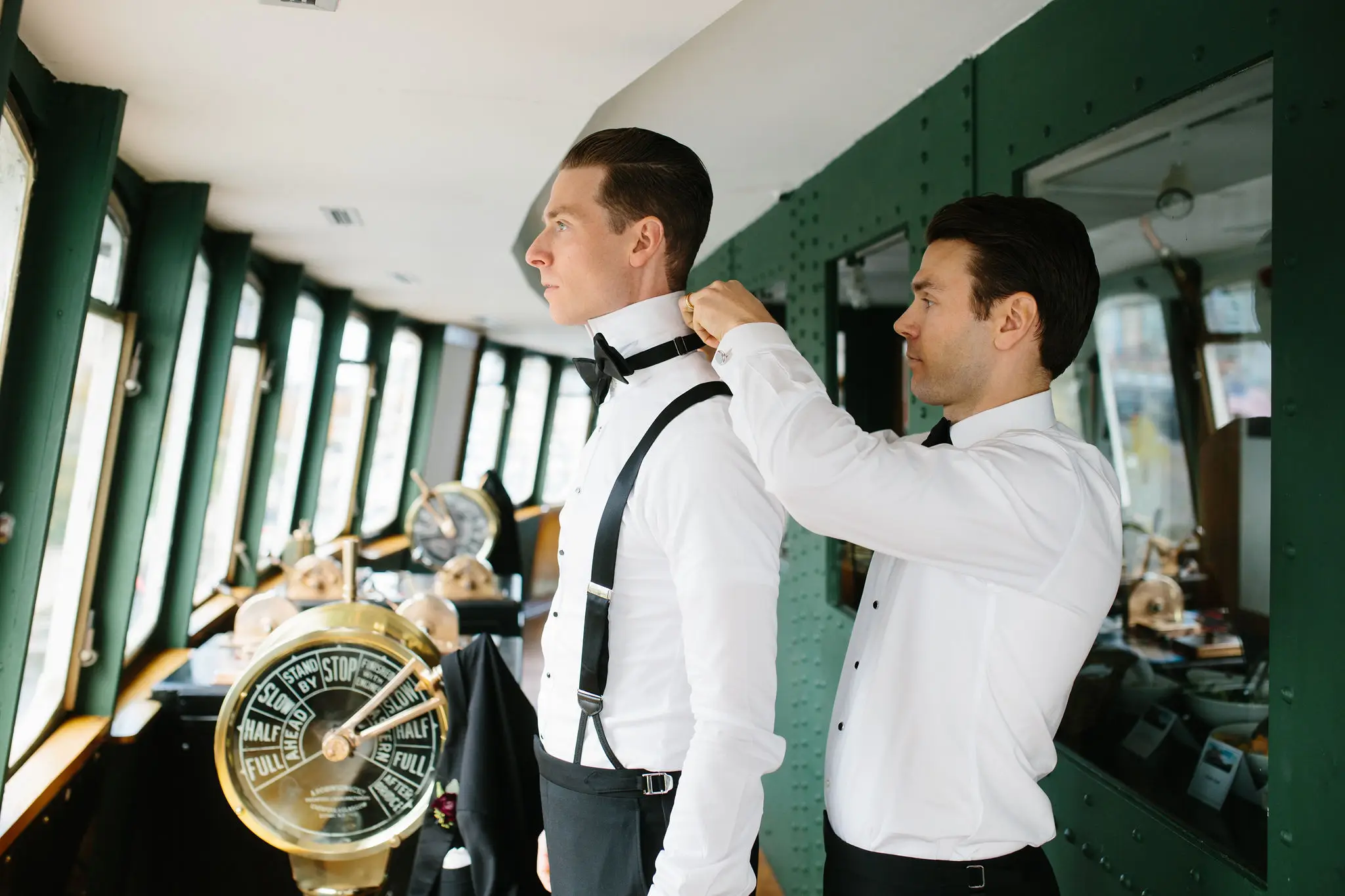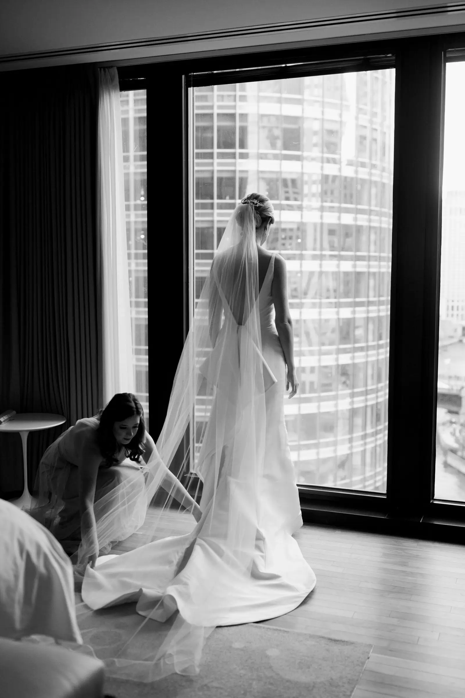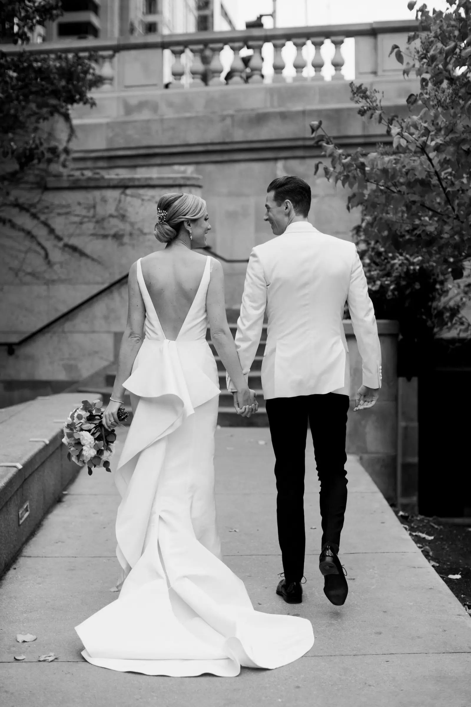 Jen and Michael definitely earned some “best dressed status” in their wedding finery. Jen was a Grace Kelly-esque vision in her timeless Oscar De La Renta sheath gown, and Michael showed off his style in a dinner jacket from The Black Tux. The bridesmaids were in Jenny Yoo NYC.