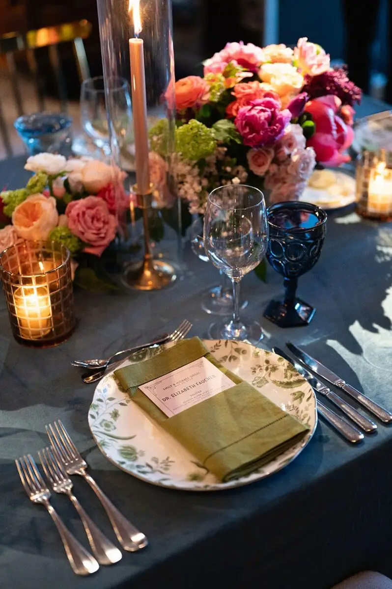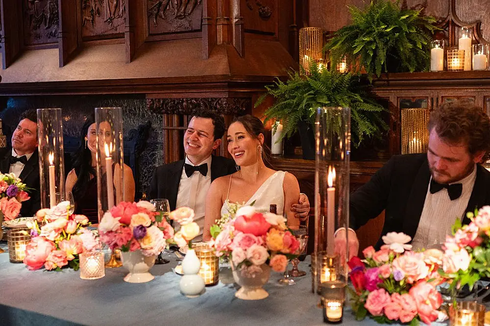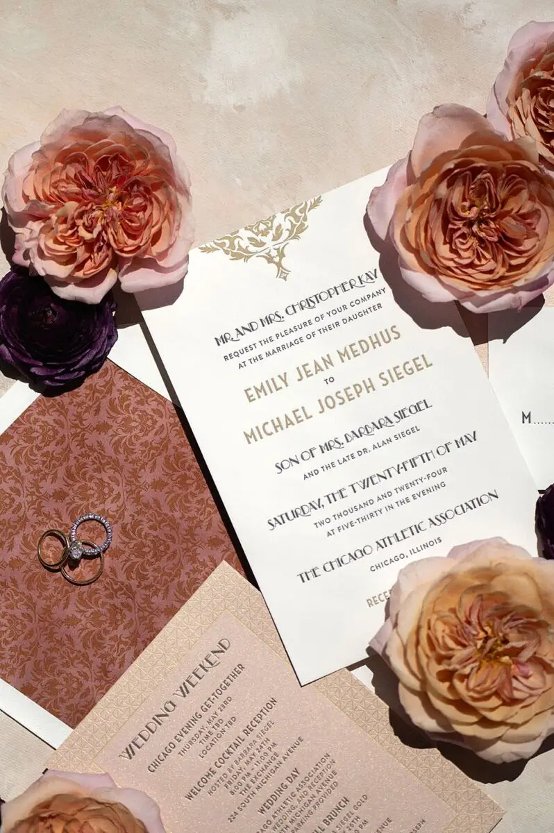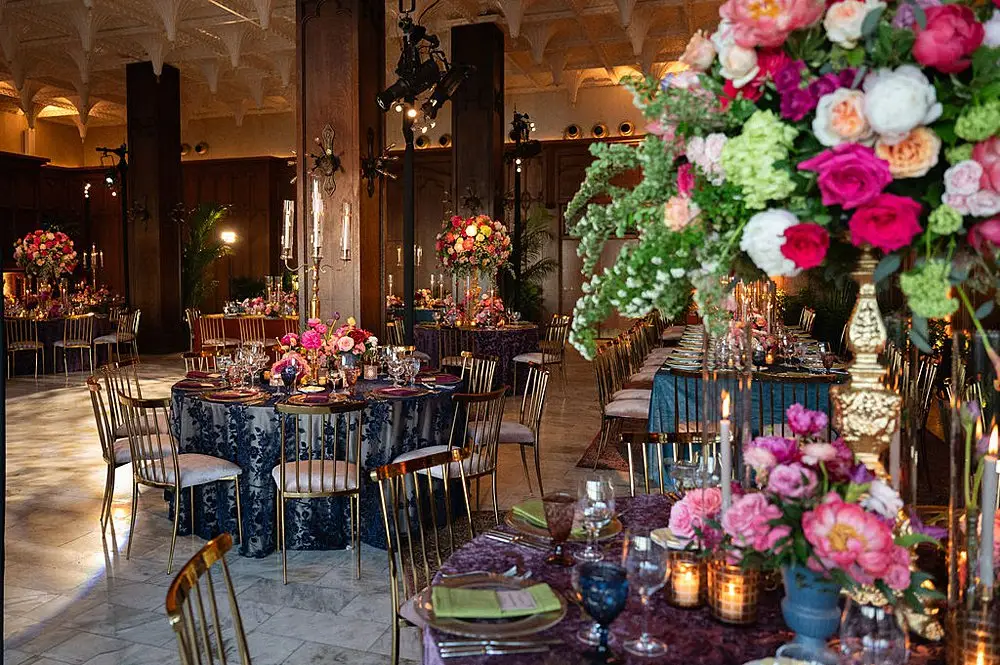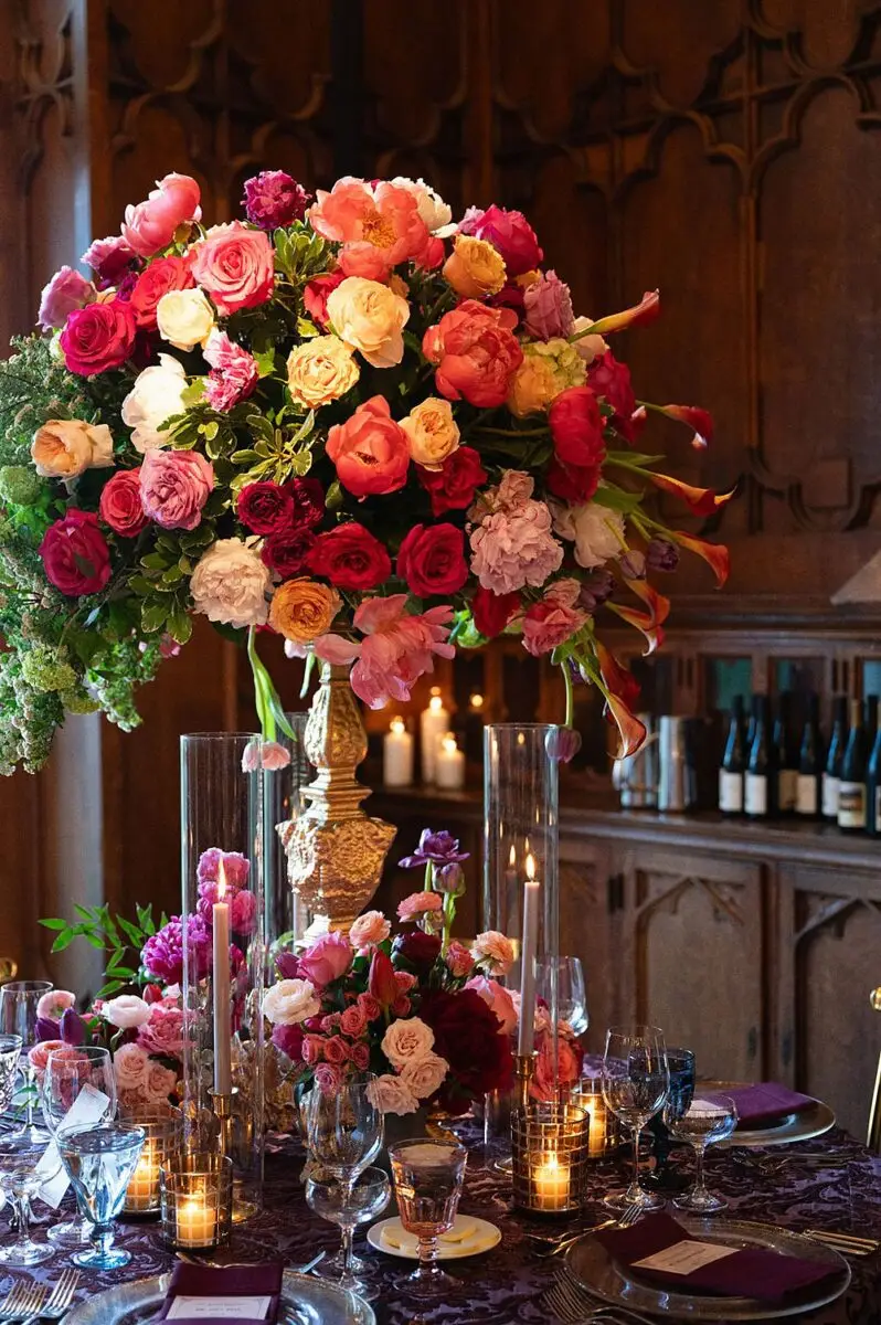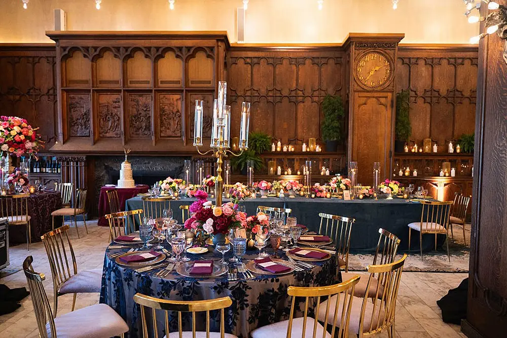 As a wedding planner in Chicago, I have really love how couples have embraced COLOR for their wedding design this year. I’m a huge fan of a big fat white wedding, but there is something about the vibrancy of the full spectrum of color that gets me really excited from a design perspective. Thankfully for me, Emily and Michael were fully on board too! Our inspo boards were pulled from the runways of Gucci and Dior in the way they mix color, pattern and texture, and the full embrace of floral and candelabras was pulled right from an episode of Bridgerton. Filling each corner with vintage rugs, romantic candlelight and plants highlighted the architecturally inspiring corners of the Madison and White City Ballrooms at the Chicago Athletic Association Hotel and completed the design. HMR pulled the look off effortlessly and finished the design with linen and chairs from Nuage Designs and stationery from Steracle Press.