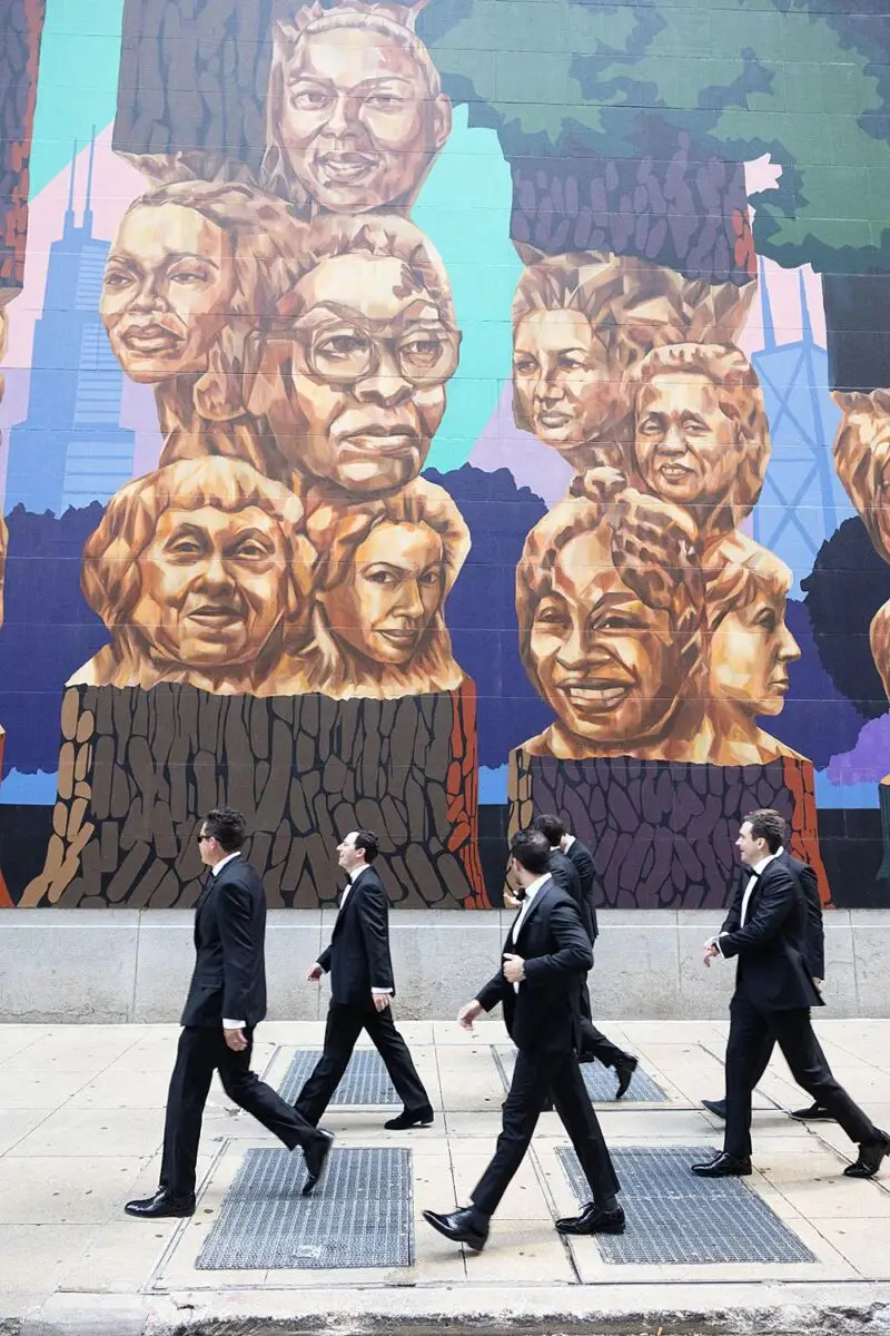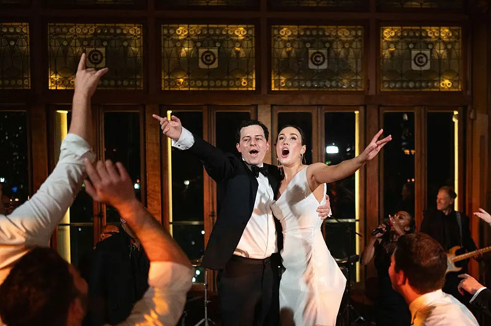 Wedding guests entered the White City Ballroom to a lush chuppah in shades of pink from blush to raspberry and were brought to tears by the personalized ceremony by Zen Events. They then entered the Madison Ballroom where a gorgeous focal bar stood below the room’s iconic chandeliers. The lighting by Frost Chicago for cocktails accented the room perfectly, and made for a great twist when we reconfigured it for the late night after party complete with DJ Chris from Elegant Sound & Lighting and Shake Shack for the late-night munchies you get after dancing your butt off to the Lakeshore Encores all evening. Of course, the unparalleled talent of Amanda Megan Miller captured the entire day perfectly with her usual combo of effortlessly trendy and classic AF.