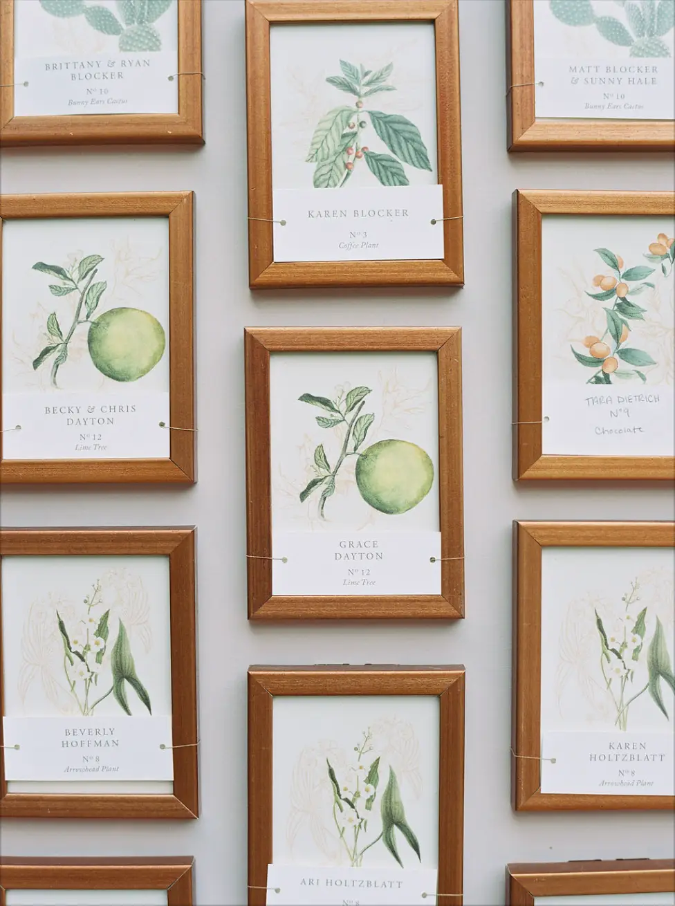Guests found their seats at a custom made place card display, from which hung frames that the groom made himself in his family-owned frame shops that he happens to manage. They so perfectly surrounded gorgeous artwork that Emily created, again, showcasing that these two fit effortlessly together. Guests found their seats, and after enjoying a delectable meal from Food for Though, danced the night away to the Blue Water Kings Band.