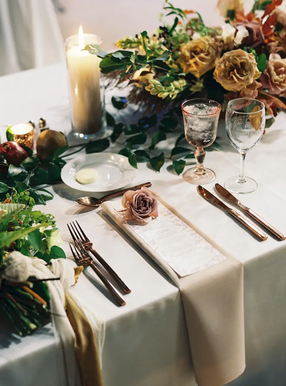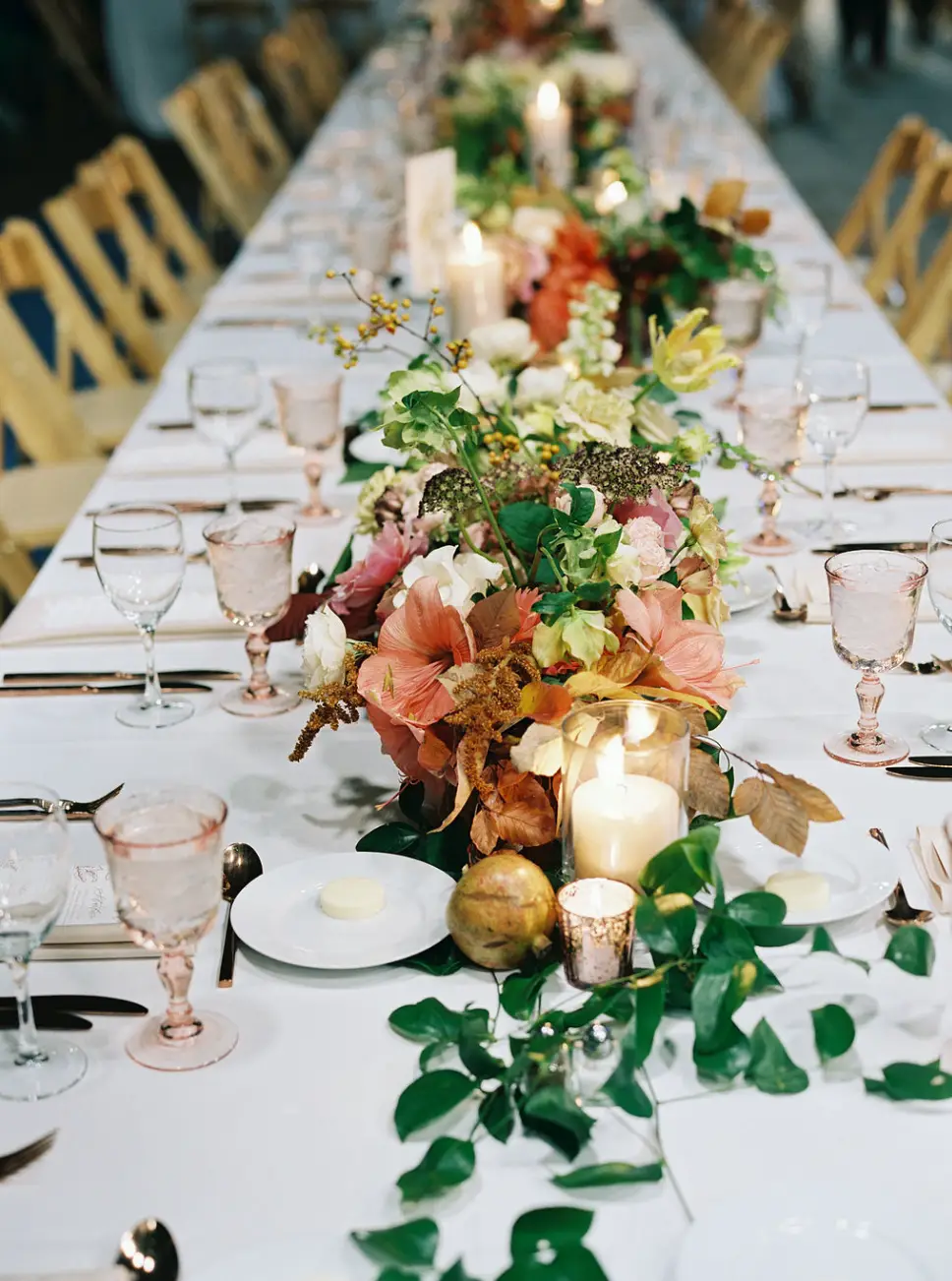 Kelly Lenard of InterTwine created the most amazing floral for the day. Both Emily and I had admittedly fan-girded over her work for some time, and getting to collaborate with her was an absolute dream come true. The florals were better than the couple could have imagined. We tied the design together with some rentals from Nimblewell and very specific candles from Yummi Candles, all while showcasing the amazing able numbers Emily created.