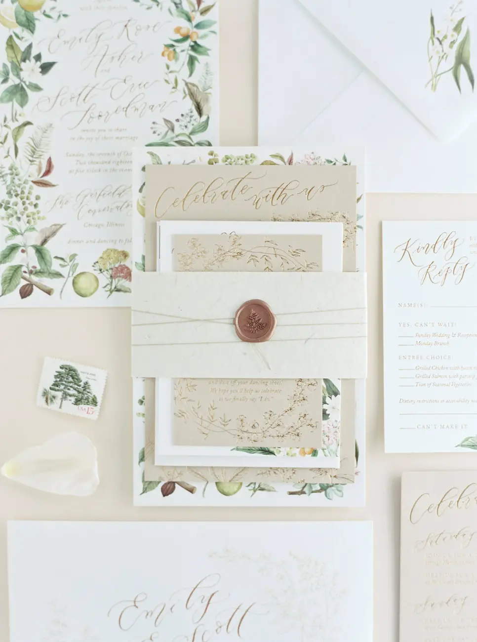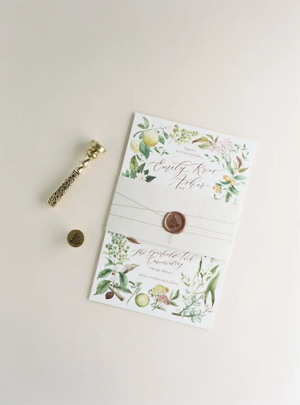 This magical indoor garden wedding at Garfield Park Conservatory holds a very special place in my (Kirsty’s) heart. Our beyond stunning bride is the celebrated Stationary Designer and Calligrapher Emily of Emily Rose Ink. Having a vendor ask you to work with them on their wedding is the highest honor and best compliment! I knew this bride had a very specific vision for her day, and so enjoyed teaming to bring it to life to celebrate her and her sweetest-ever now husband, Scott.