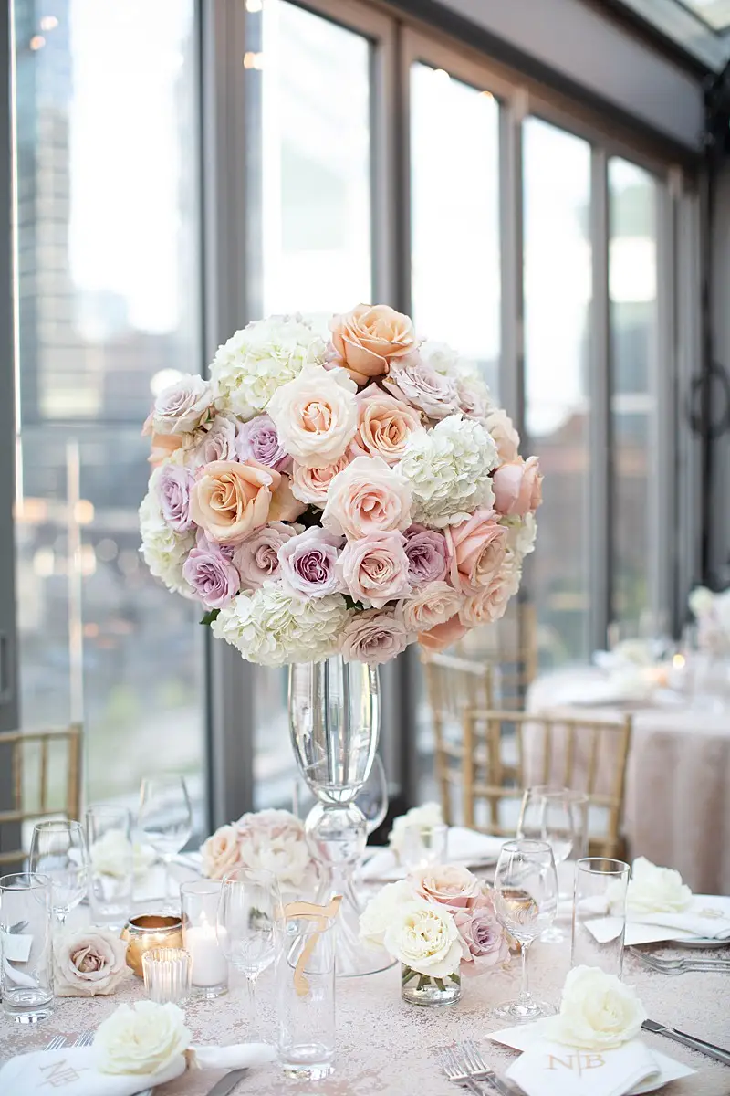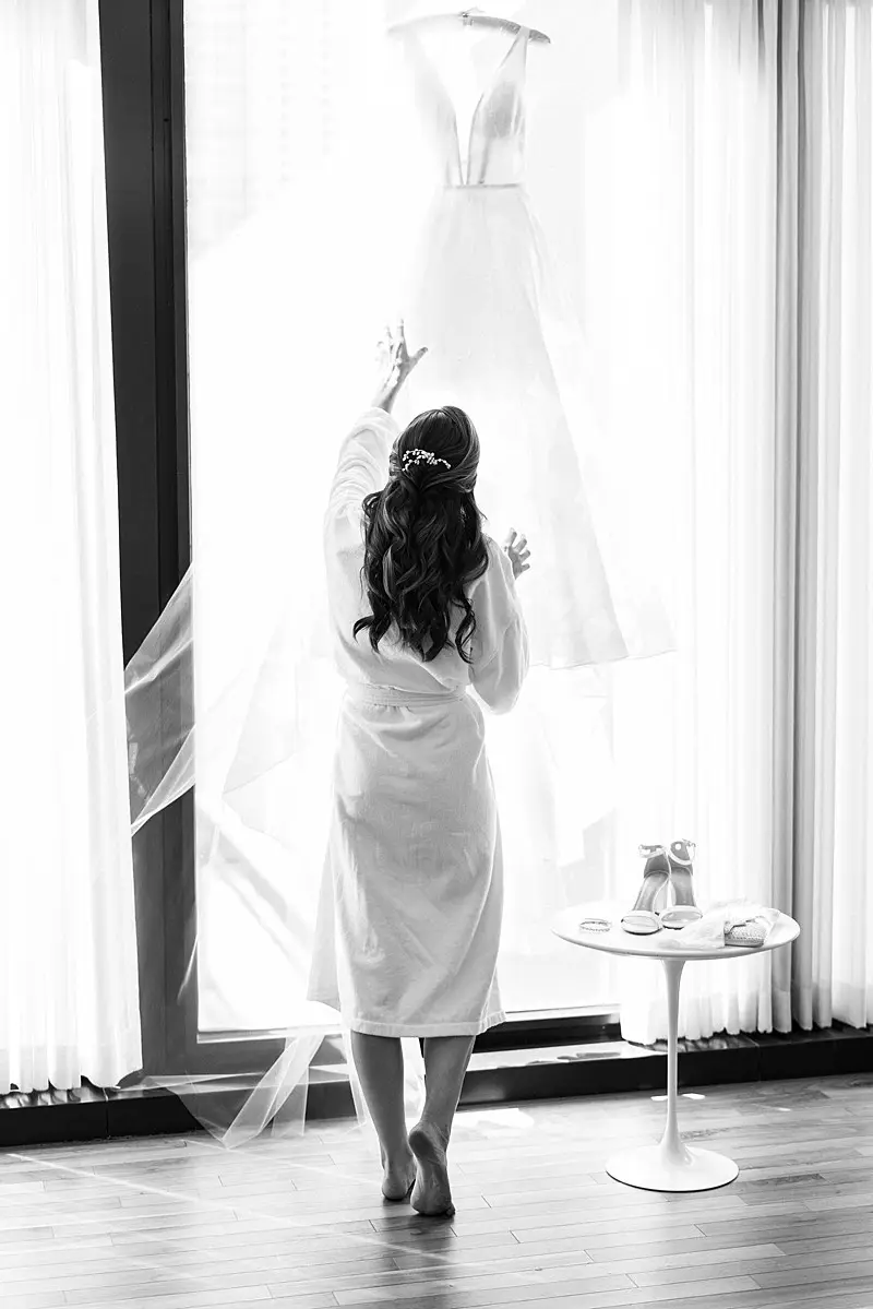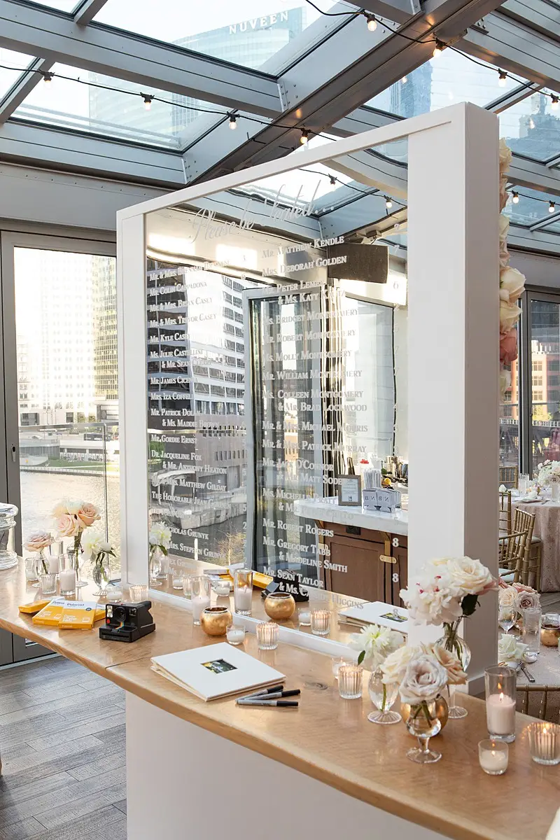 When Nora and Brian started planning their Spring 2021 wedding, “covid-19” was a word none of us had ever heard before. Soon after we got started, the pandemic hit and took the wind out of our sails. We quickly realized that the best way for the clients (and their planner) to sleep at night and be able to look forward to the wedding, was to plan something intimate and safe so there would be no need to pivot if things didn’t clear up by spring. When everyone else was taking their plans from 200 guests to 50 or less, we had already made the move to a small wedding and we were getting excited about the possibilities. Outdoor weddings were gaining popularity as more ‘pandemic-proof’ venues, and Gibson’s Italia was the perfect choice with its floor-to-ceiling windows that opened up to the Chicago skyline and even a retractable roof if it was a perfect day. NO worries about the weather for N&B!