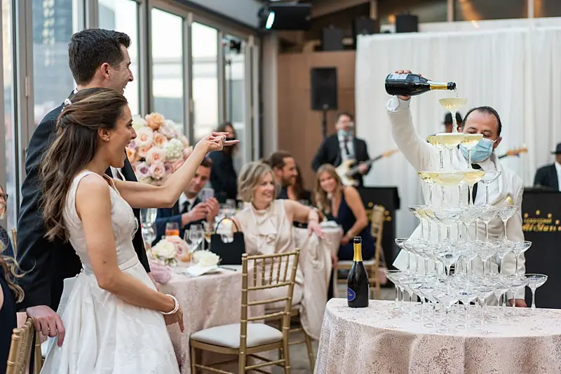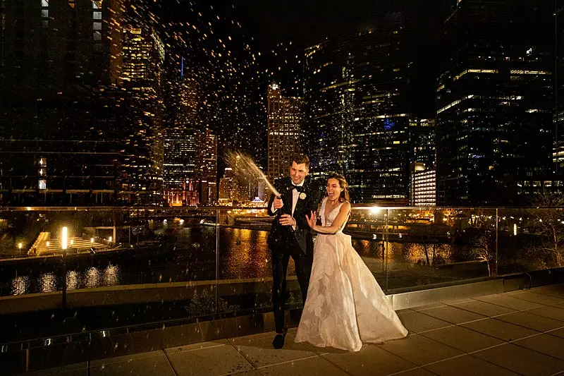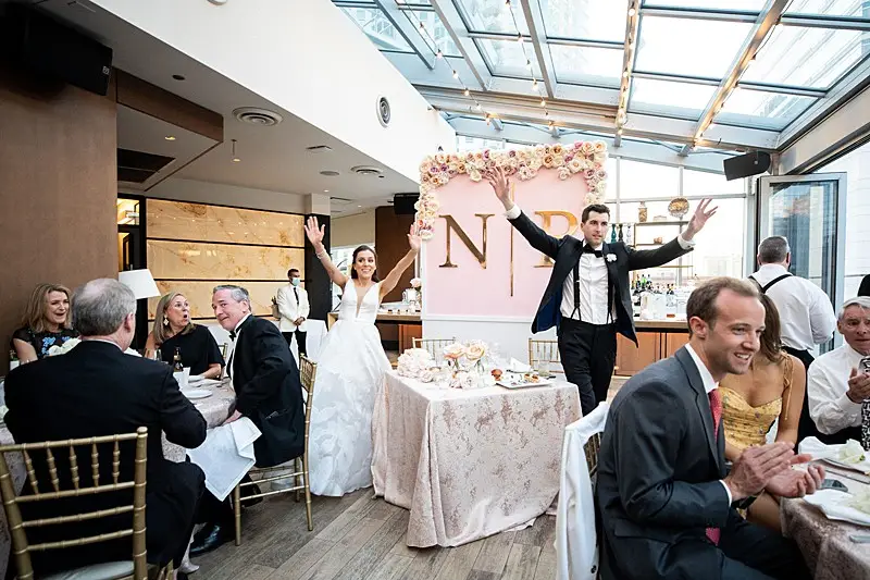 Small but mighty, you couldn’t keep this group from having a great time. From Nora and Brian’s first dance when we opened up the roof and let in the warm spring breeze, to the late-night sing-a-long their friends had with a member of The Gold Coast All-Stars outside on the city sidewalk when they didn’t get all the groom’s favorites in during the band performance during dinner. Just goes to show… You don’t need hundreds of people and a big dance floor to have a chic, lively and memorable wedding day if that isn’t your dream wedding!