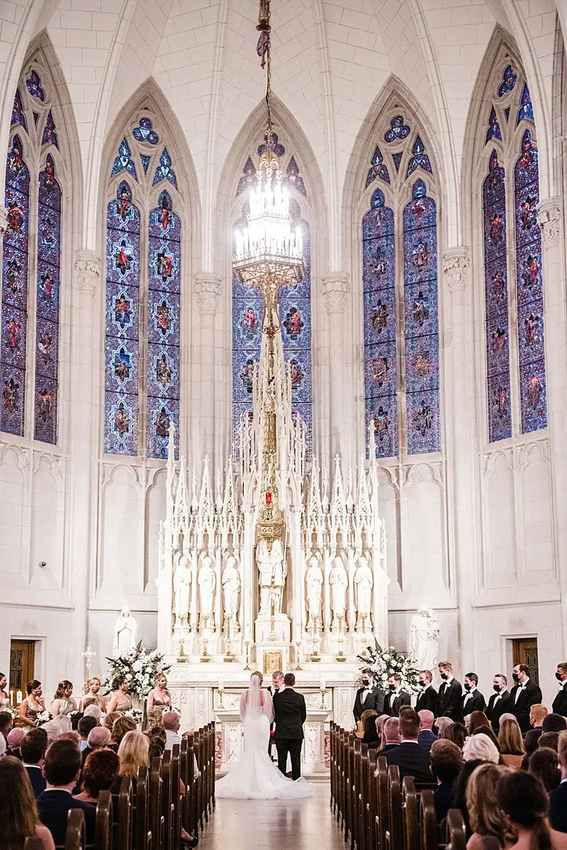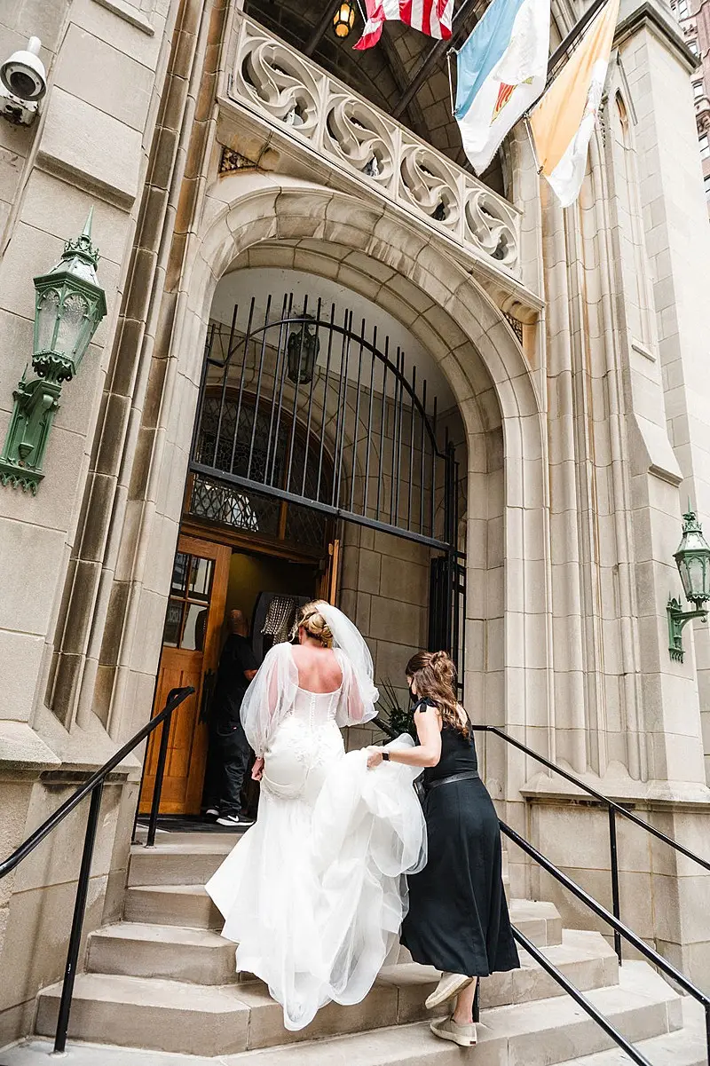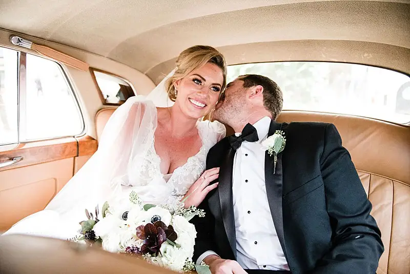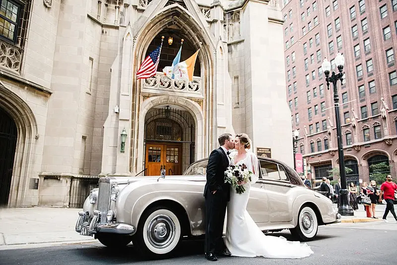 Once ready to head to St. James Chapel, the wedding party loaded on board their Premier Trolley and made their way to the ceremony. Bri and her brothers lingered behind to eventually hop into a vintage gold Bentley from Celebluxe Limos. It was the perfect way to arrive in style.