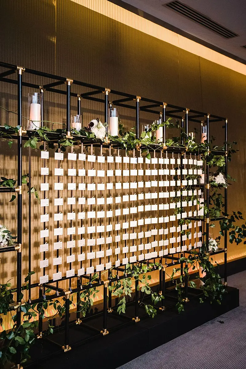 When guests arrived for cocktail hour, they were instantly greeted by a curated look from start to finish. Our escort card display had an ever-so-subtle grey ombre effect to keep things traditional with a touch of mood, and the display of family wedding photos was something to talk about. There was even a vintage phone from “Ater the Tone” that allowed guests to leave voice messages for the couple to listen to in lieu of a traditional guestbook.