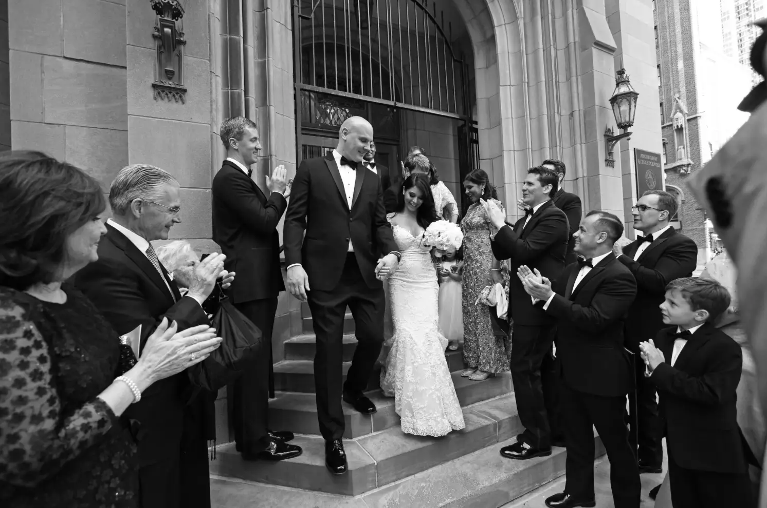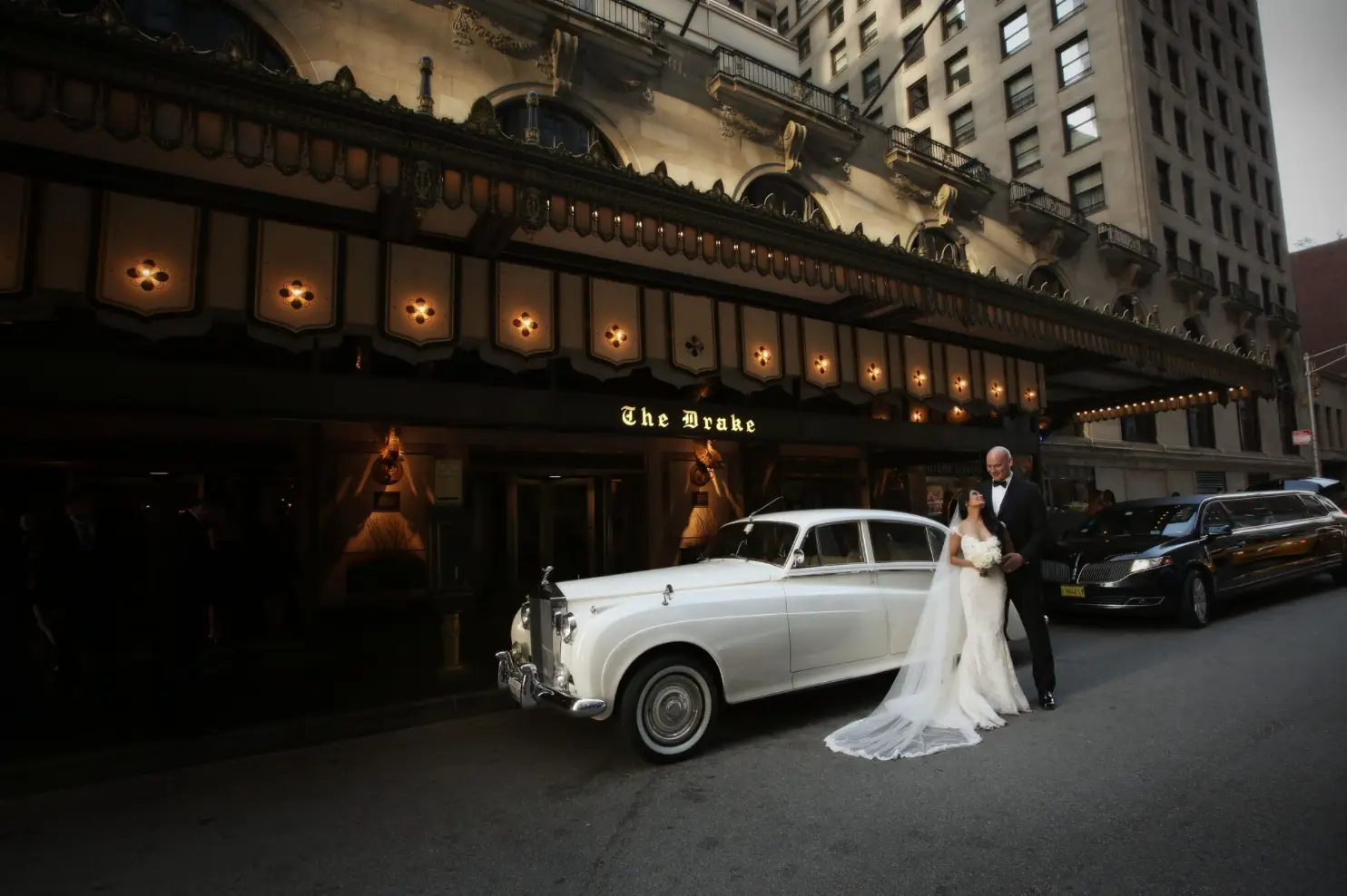 The bride and groom chose St. James Chapel for their ceremony. With its stunning stained glass windows and low lighting, it made for what felt like a very intimate ceremony even with all the pews filled up with their closest family and friends from around the world. After the ceremony, Lyndal and Neil got in a vintage Rolls Royce and made their way to the Drake Hotel.