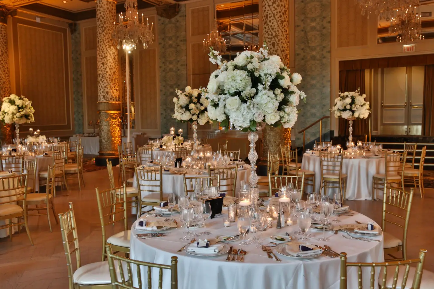 The Gold Coast Ballroom at the Drake was set with ivory linens, lush ivory floral, glamorous crystal candelabras, and gold accents throughout. Dinner kicked off with the Drake’s famous Champagne Parade, which was a great way to welcome all of the guests into the beautiful ballroom. As the evening went on, the room truly sparkled with the touches of crystal catching the light from all directions. A favorite part of the evening was Rosemary Franti who created a series of portraits of Lyndal and Neil throughout the night during important moments like their cake cutting and first dance. Soon, it was time to hit the dance floor with music from TVK Orchestra. With guests from around the world, one thing is for sure – music definitely brings people together as witnessed by the packed dance floor! It was the most romantic night!