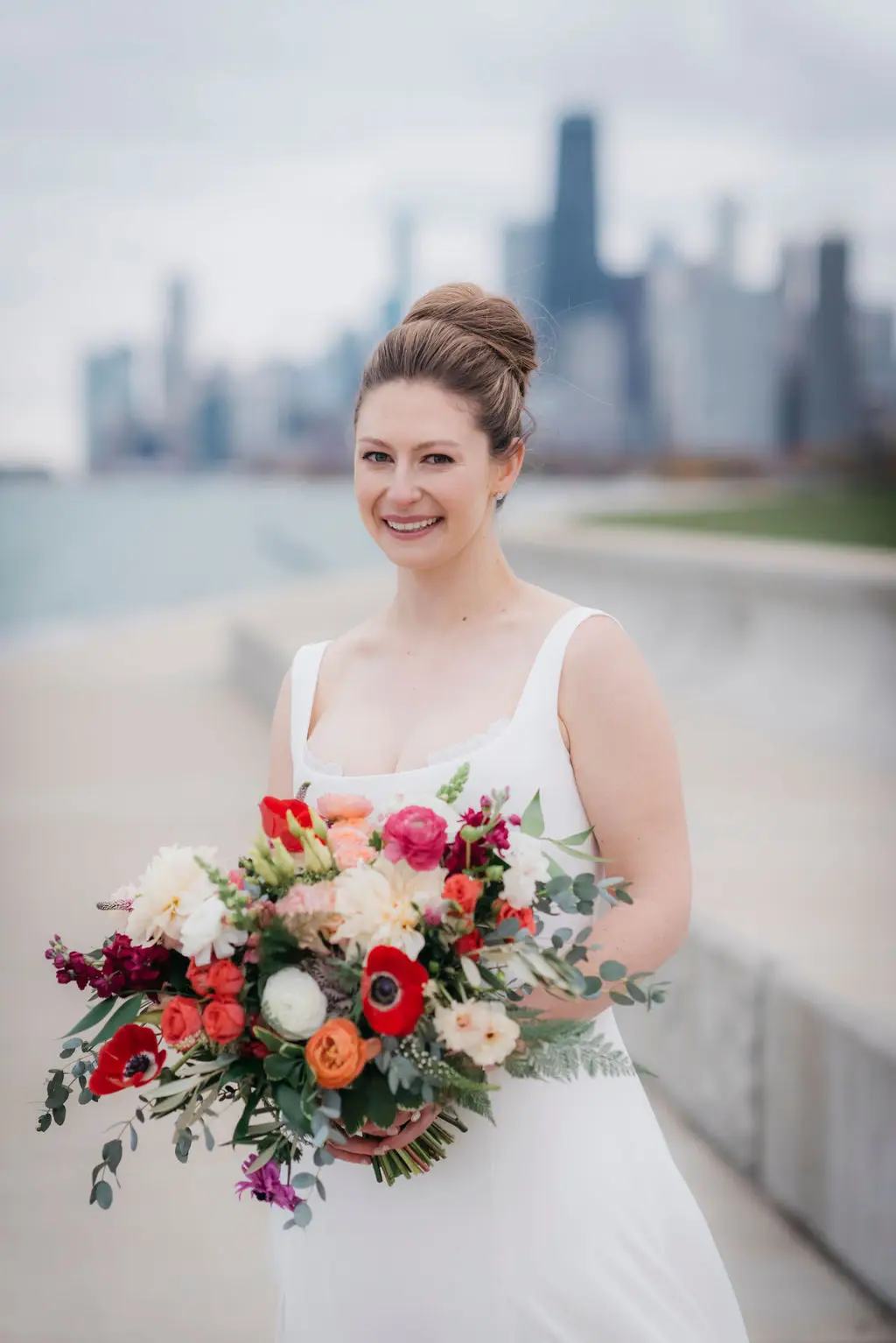 After hair and makeup from the amazing team at Patty McGuire Hair & Makeup, Charlotte put on her bridal gown at home with the help of her mother and sister who also acted as her maid of honor. Charlotte and Drew’s first look took place on their rooftop which overlooked their Logan Square neighborhood. Erin Hoyt captured the cozy and relaxed day, focusing on those small moments and personal details. In the middle of the Great Hall, Stems built a lush and overflowing canopy that surrounded Charlotte and Drew where, with the help of Dr. Kyle Nash, they said “I do”. Guests sat in pairs surrounding the couple.