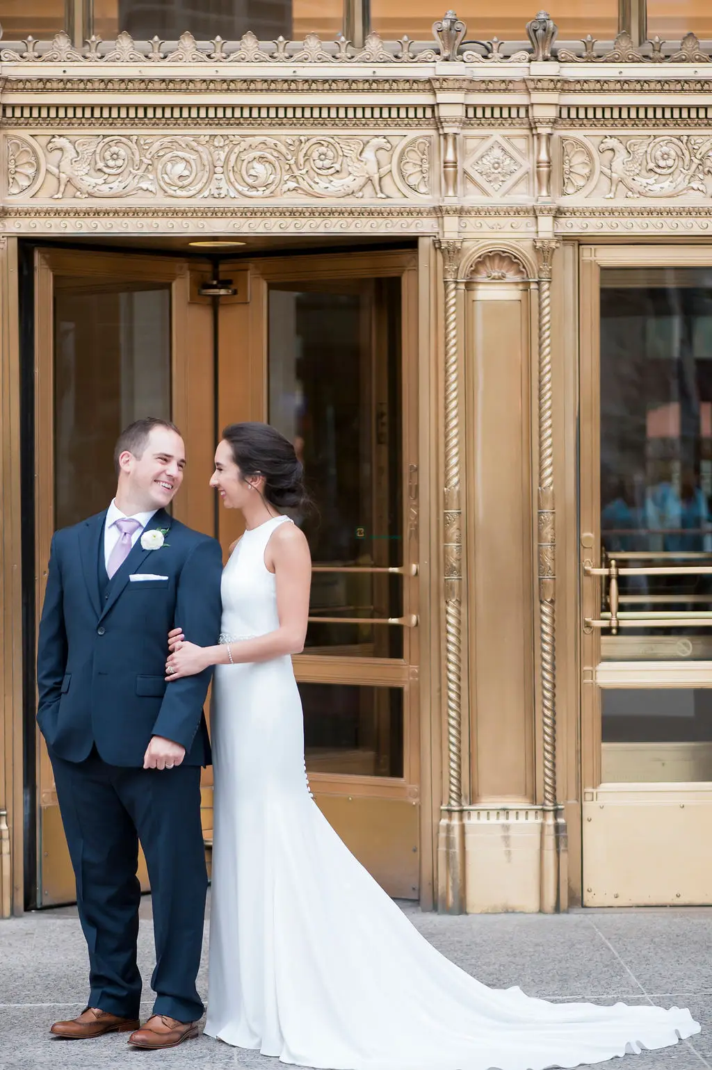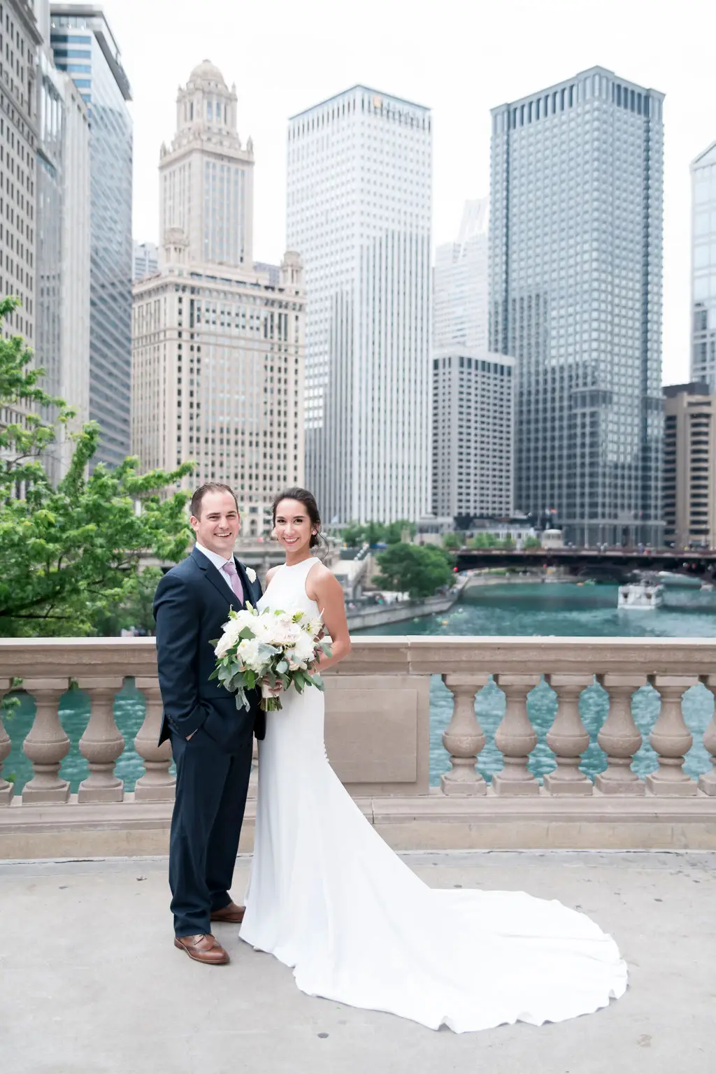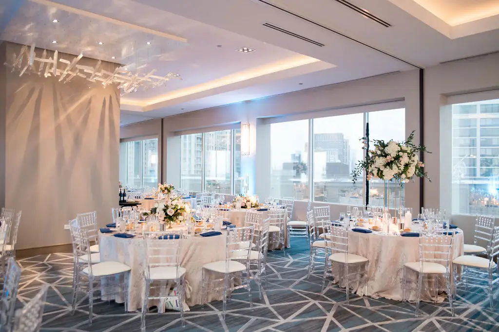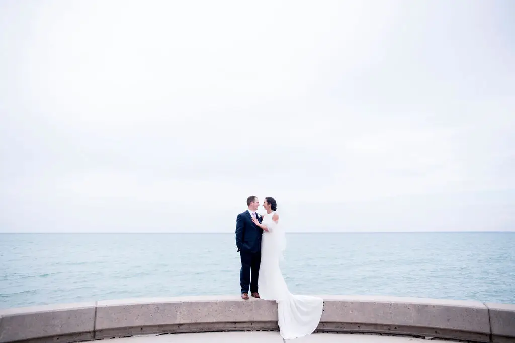 Audrey (originally from Ohio) and Marc (originally from Michigan) met while they both attended college at Loyola University in Chicago. They knew right after their engagement that they wanted to be married on campus at the beautiful Madonna Della Strada Chapel. They were also pretty open to venues, but knowing that a large percentage of their guests would be traveling from Ohio, Michigan, and even the Philippines, we focused our search on hotels. The Swissôtel popped up on Audrey’s radar after learning of a new ballroom renovation. After a site visit to see the ballroom called Eleve, which was very much under construction and just lots of metal and concrete at the time, Audrey and Marc knew they found the perfect location for their reception. The ballroom had full views of Lake Michigan, Navy Pier, and the Chicago River. What more could you want for all of your out-of-town guests?!