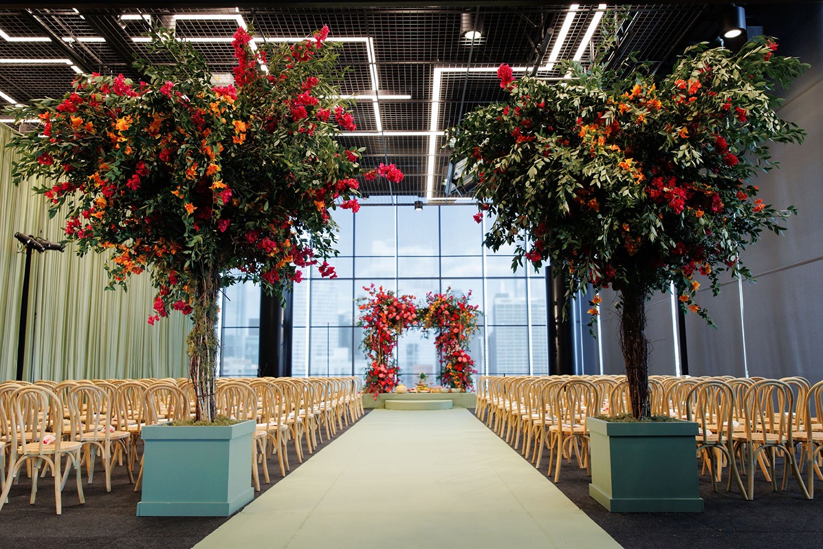 When Vineela and Alex came to me for help, it felt like a perfect match. Their aesthetic was modern, whimsical, and full of color, which aligned beautifully with my approach to designing garden-inspired Chicago weddings.