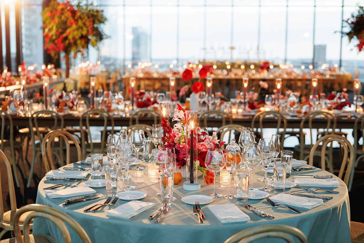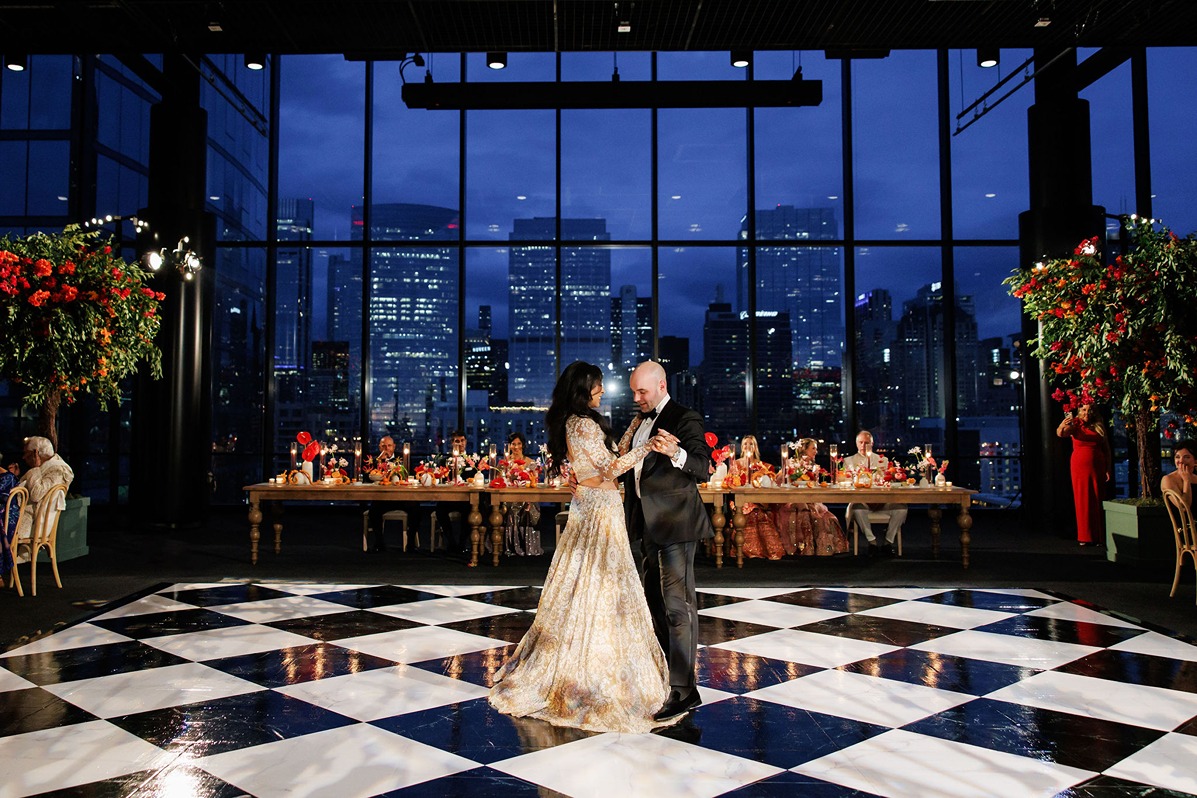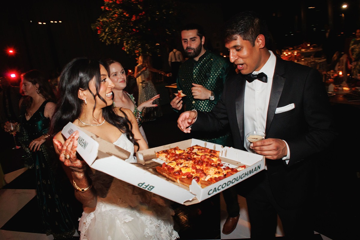The ceremony and reception took place atop the 167 Events rooftop, offering a breathtaking Chicago skyline view. Guests dined on a fusion menu blending American and Indian-inspired cuisine, while the late-night espresso martini bar and Prince Street Pizza—passed by the bride and groom on the dance floor—were hands-down the most loved refreshment stations of the weekend.