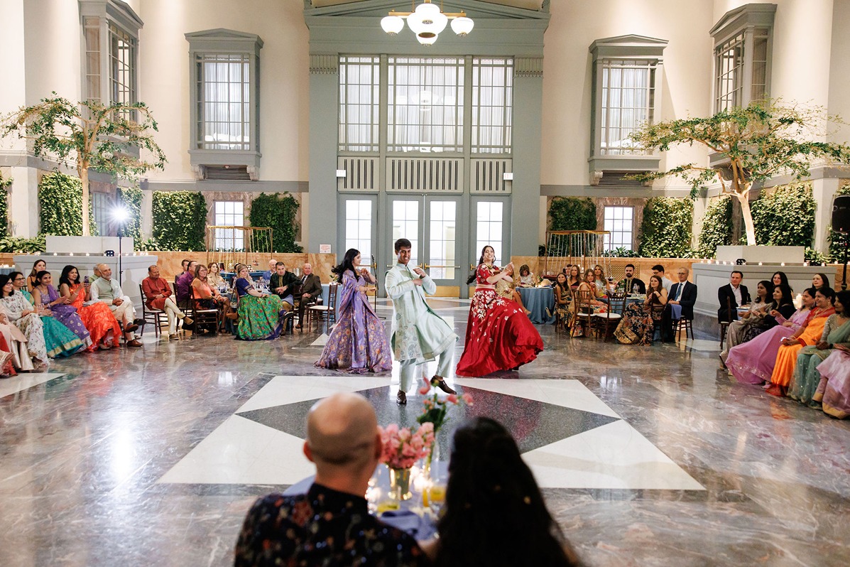 Guests enjoyed traditional Indian food and dessert stations by Matra Catering, while friends and family performances brought the room to life. Henna enthusiasts had a blast at the mehndi stations by Unnatzi Z’Art, adding a beautiful and personal touch to wedding weekend fashion.